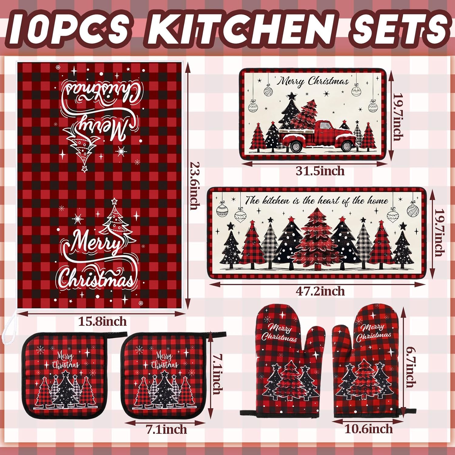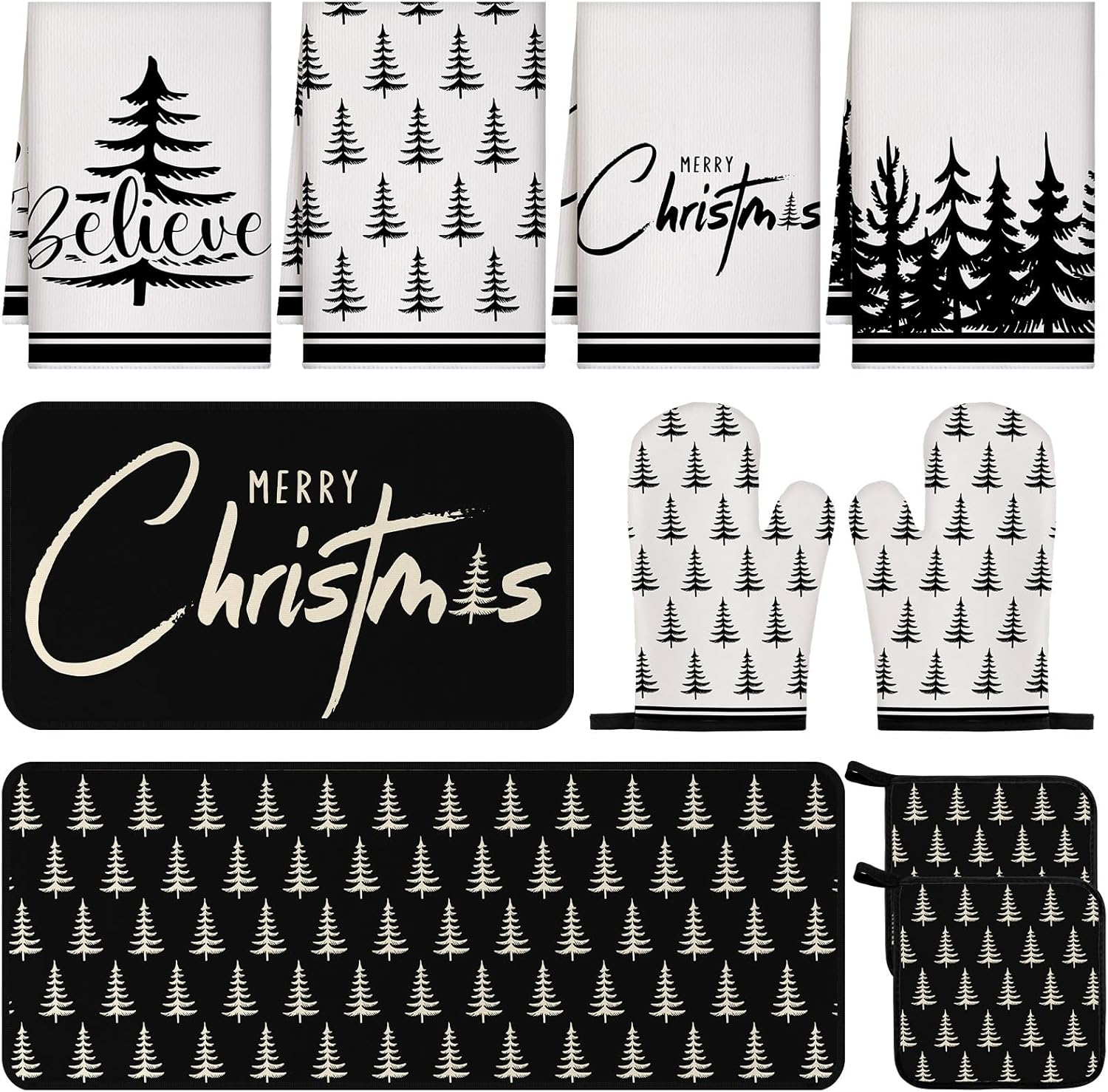 Features: The kitchen towels and oven mitt sets are vibrant in colors, delicate in craftsmanship, full of Christmas atmosphere, adding a touch of warmth and romance to your home. The kitchen towels set are designed with attractive, eye catching and lovely patterns that symbolize Christmas, the nice combination of seasonal decor and daily use. Specifications: Material: Towel: microfiber Pot Holders: polyester fiber, insulation cotton Mitts: polyester fiber, insulation cotton, non woven fabrics Mat: polyester fiber Color: multicolor Size: Towel: about 15.75 x 23.62 inches/ 40 x 60 cm Pot holder: about 7.09 x 7.09 inches/ 18 x 18 cm Mitts: about 6.69 x 10.63 inches/ 17 x 27 cm Mat: about 31.5 x 19.69 inches/ 80 x 50 cm, 47.24 x 19.69 inches/ 120 x 50 cm Package includes: 2 x Christmas placemats 4 x Kitchen towels 2 x Pot holders 2 x Oven mitts Notes: Manual measurement, please allow slight errors on size. The color may exist a slight difference due to different screen displays.