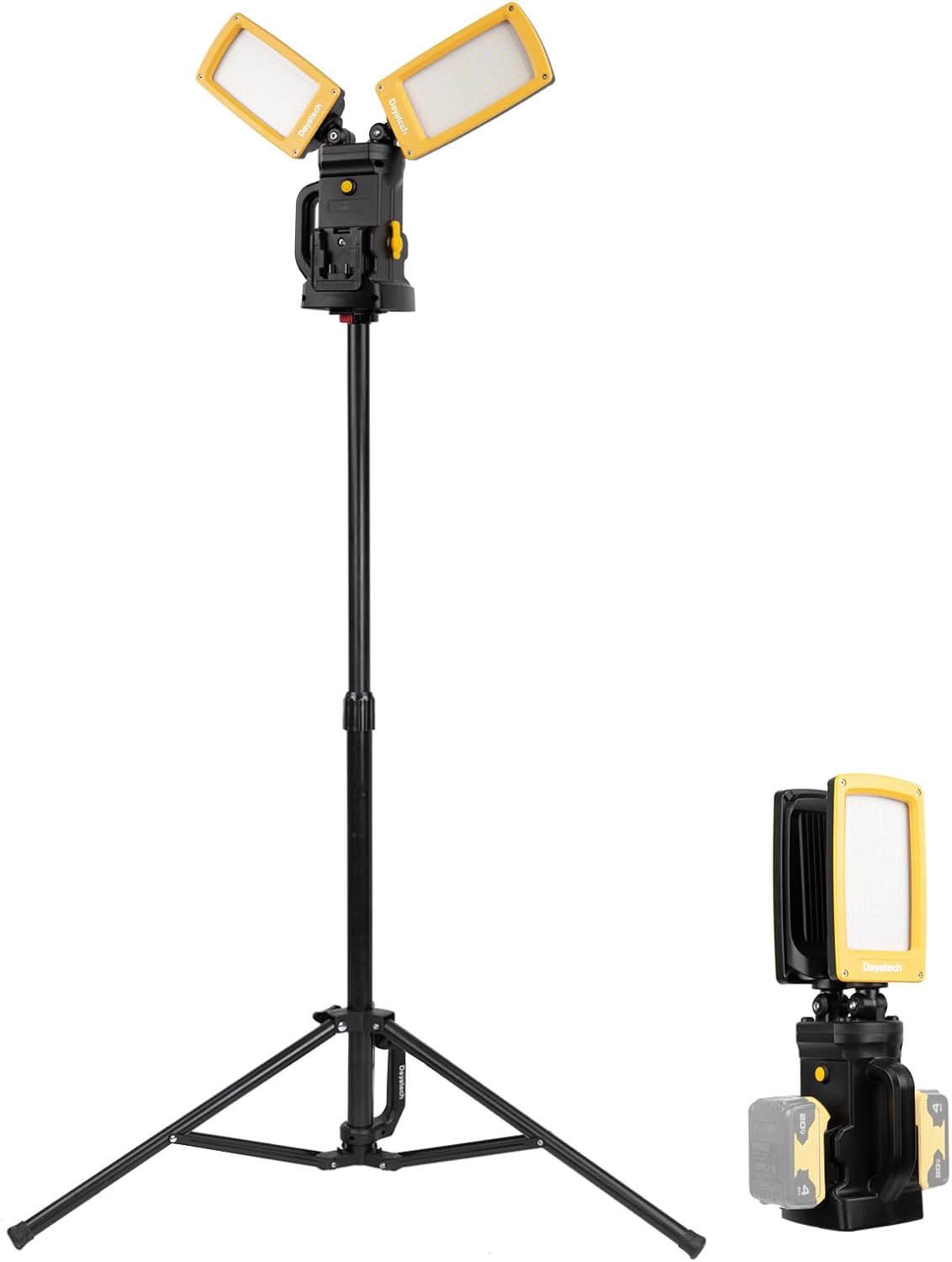 | BuiltIn Media | 2X ADPATER FOR DEWALT MILWAUKEE, 2X ADPATER FOR MAKITA, AC POWER ADAPTER, Dual-Head LED WORK LIGHT, TRIPOD STAND |