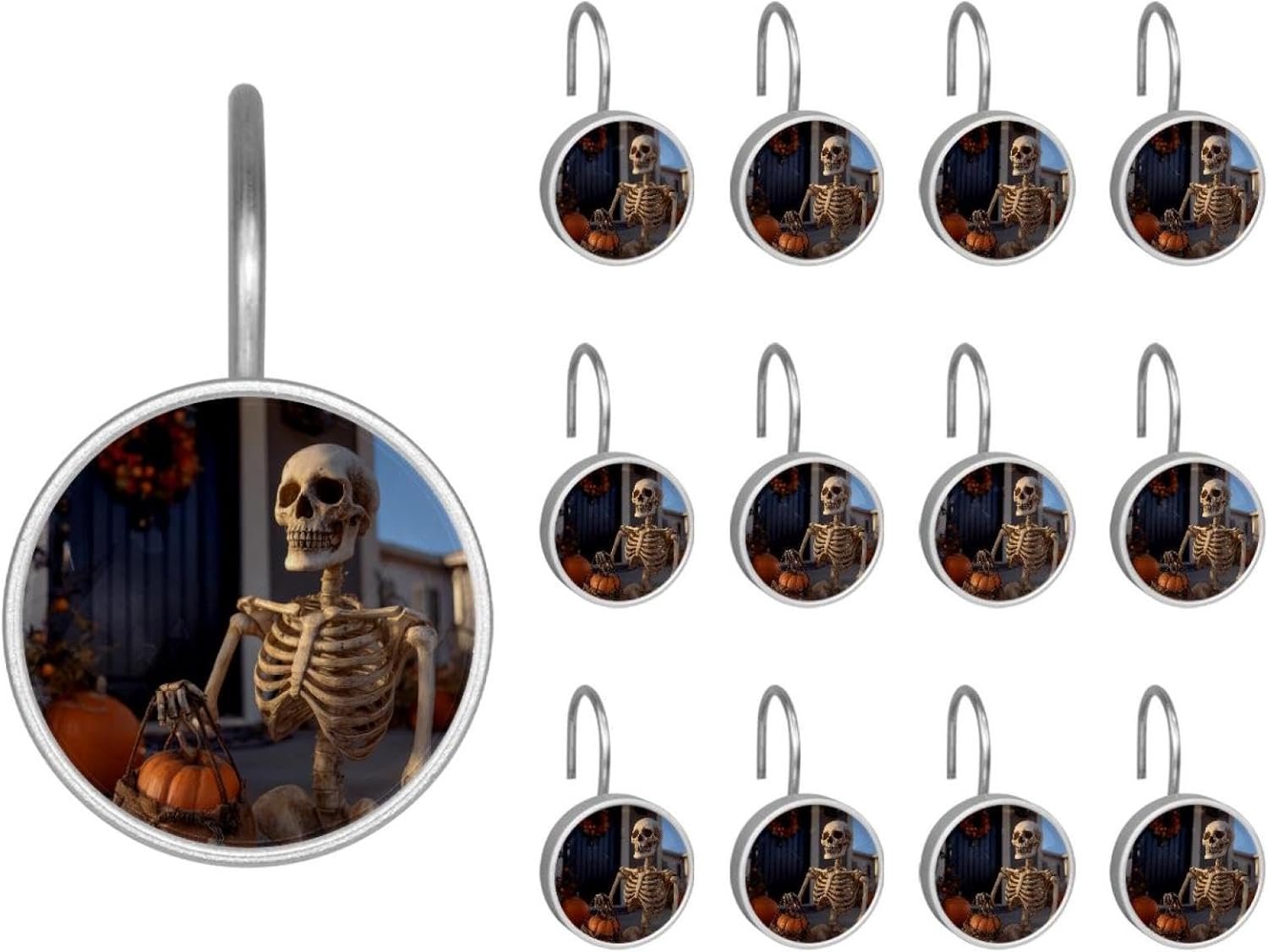 MATERIAL: glass, stainless steel. These shower curtain hooks can be decoration bathroom and will be long-lasting.12 pieces of shower curtain hooks, round crystal glass decoration, printed patterns, silver hooks to match various styles of bathroom shower curtains. SIZE: Crystal glass diameter of round shower curtain hook is 1.45x1.45in/ 3.7x3.7cm. The shower curtain hooks diameter is about 1.1in, 12 pieces shower curtain hooks are suitable for rod of 8-28mm(0.3"-1.1"). RUST RESISTANT:Shower hooks are made of stainless steel and crystal glass, which is durable, rust-proof and corrosion-resistant, it will not rust suitable for wet bathroom environment. EASY TO INSTALL:Hand the shower curtain hooks hold securely on straight or curved shower curtain rods,slid easily and smoothly. Easy to install and decorate your bathroom. BEAUTIFUL AND ELEGANT:Beautiful Love hook add charming scenery for your bathroom, baby room, bedroom, living room, and the gorgeous style is easy to match with any kinds of bathroom shower curtain. EASY GLIDE: Open and close your shower curtain quickly and easily with the Shower Hooks, easily glides on shower curtain rods and tension rods. No snagging; no effort; no hassle PACKAGE: 12 shower curtain hooks in a pack.The bathroom curtain hook has a smooth appearance and can be hung on the pole to pull it at will. Special price 12 sets to meet your needs.