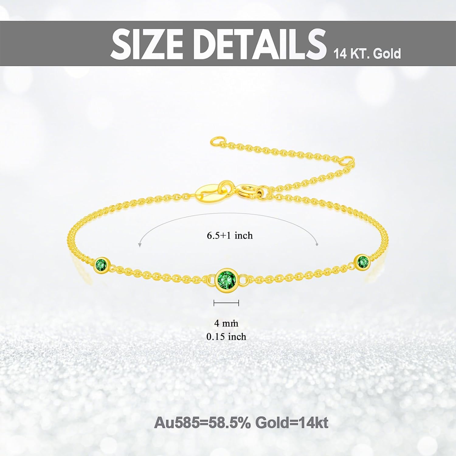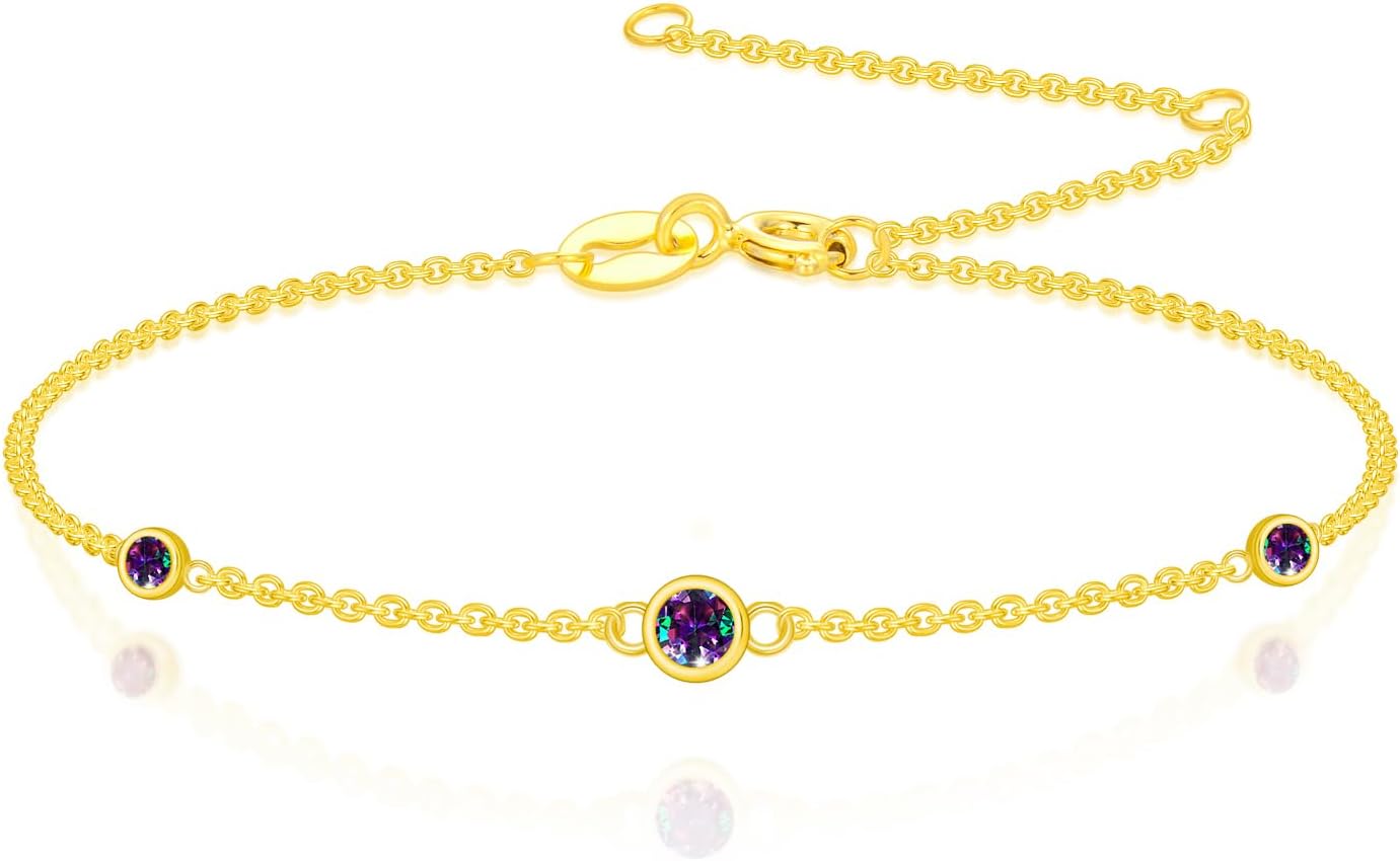 About FoouiWe believe that every piece of jewelry is unique, and as a jewelry brand, we also believe that every piece of jewelry should be the same. Our insistence on the uniqueness of our jewelry designs is what sets us apart from all everyday essential jewelry.Fooui PurposeWe are committed to providing artistic design and craftsmanship, and our slogan is "Always love you with my heart". We allow you to become a jewelry creator and shine with your own style.14K Gold Bracelet - 14 karat gold is composed of 58.5% pure gold.The fineness of a precious metal is important for determining its value and quality. Higher fineness levels generally indicate a higher purity of the metal, which can affect its price and durability. Fineness is typically measured in parts per thousand, with a higher number indicating a higher percentage of pure metal.Product SpecificationMaterial: Real 14k solid gold braceletIncludes: Gold gemstone bracelet* Beautiful Luxury Gift BoxThis birthstone bracelet jewelry gift is suitable for her, mother, wife, girlfriend, mom, sister, best friend on Birthday, Anniversary, Valentine's Day, Mother's Day, Christmas.