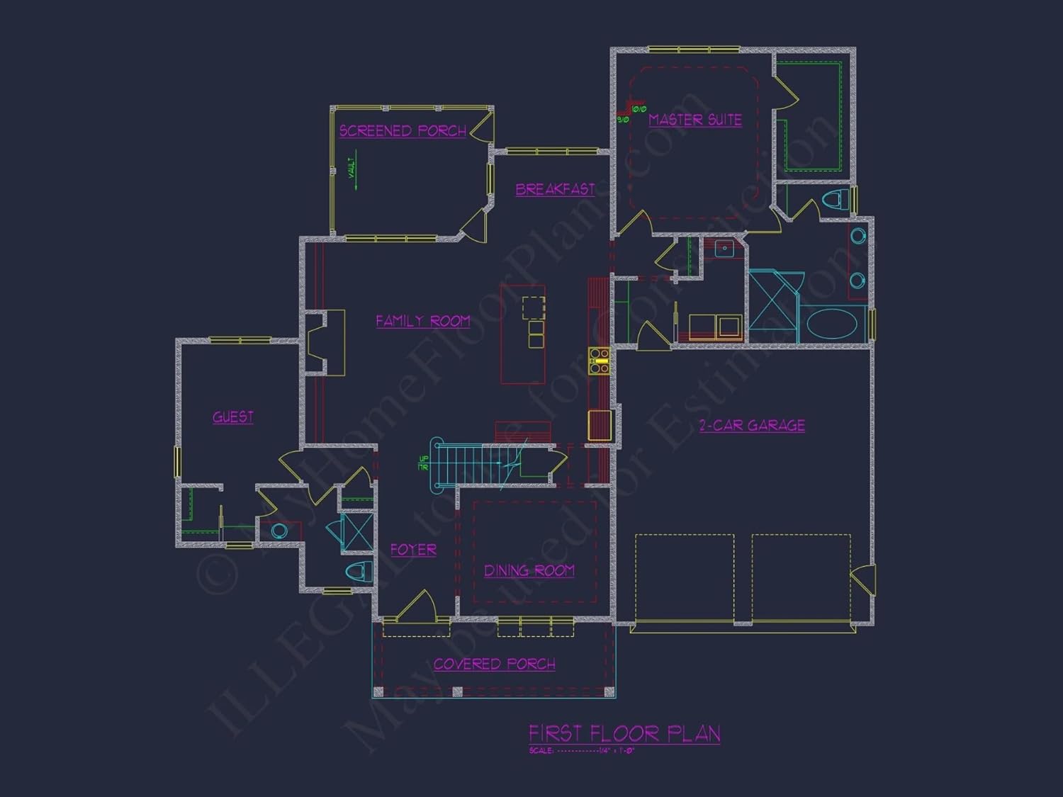 Width: 64′-0″Depth: 59′-8″Htd SF: 3,180Unhtd SF: 1,041Beautiful 2-Story House Plan with 4 Bedrooms & Open LayoutExplore this stunning 4-bedroom, 3,180 sq. ft. house plan with vaulted ceilings, open-concept living, and family-friendly architecture—CAD files and blueprints included!This Craftsman-inspired house plan offers a perfect mix of comfort and function. Designed for family living, it combines elegance, practical spaces, and timeless design elements across two expansive floors.Key Features of the Home PlanLiving Areas - Heated & UnheatedHeated area: 3,180 sq. ft. across two stories.Unheated extras: Covered front porch, screened rear porch, 2-car garage, and storage zones.Bedrooms & Bathrooms4 spacious bedrooms, including a luxurious first-floor Owner Suite with a walk-in closet.4 full bathrooms, including a Jack and Jill bathroom layout for added convenience.Interior HighlightsVaulted ceilings elevate the space and allow natural light to flow throughout the home.Open floor plan connects kitchen, dining, and living areas seamlessly. Explore open floor plans.Kitchen island with breakfast nook enhances cooking and casual dining.Walk-in closets in multiple bedrooms for smart storage solutions.Recreational and bonus rooms provide flexible space for entertainment or hobbies.Large laundry room designed for everyday efficiency.Garage & Storage DetailsGarage Bays: 2-car garage with side entry.Garage Type: Attached for convenience and security.Storage: Bonus closet spaces, mudroom with cubbies, and optional attic storage.Outdoor Living FeaturesCovered front porch and screened rear porch offer ideal shaded spots for relaxation or hosting.Craftsman-style curb appeal with shake, siding, and brick detailing. See covered porch designs.Architectural Style: Traditional CraftsmanThis design blends classic materials with functional living—ideal for families looking for a home that