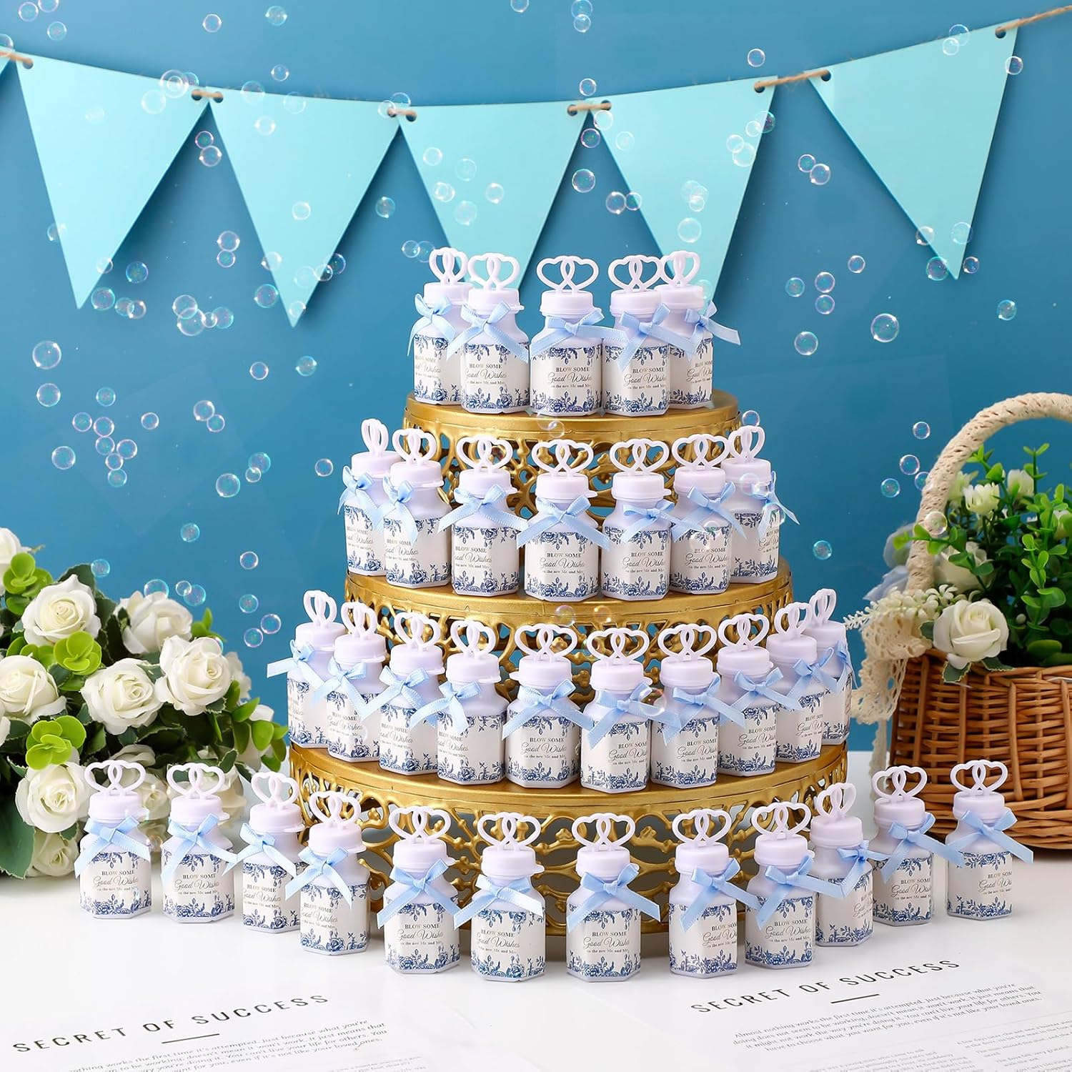 Features: 150 Pack Bubbles Bulk: You will receive a nice packing bubble set that contains 150 Pack wedding mini bubble bottles with 0.6 ounces of bubble solution. This supply ensures that they contribute significantly to the fun and festive atmosphere at your event, allowing you and your guests unlimited hours of bubbly enjoyment. Ideal for Various Occasions: Our wedding bubbles 150 count are not just for weddings. With its flexible applicability, you can make any celebration or party more festive. Like outdoor activities, family gatherings, bridal showers, party favors, anniversaries, Valentines, pool parties, themed birthdays, s, baptisms, or any form of gathering can become more enjoyable and memorable with bubbles Basic Information: Quantity: 150 Color: blue, white Size: height 2.75inches Material: plastic Package includes: 150 x Bubble Wands Bulk for Wedding Party Notes: Due to manual measurement, sizes may vary slightly. Due to screen display, product color may be slightly different from the pictureIt is suitable for people aged 18+ years old