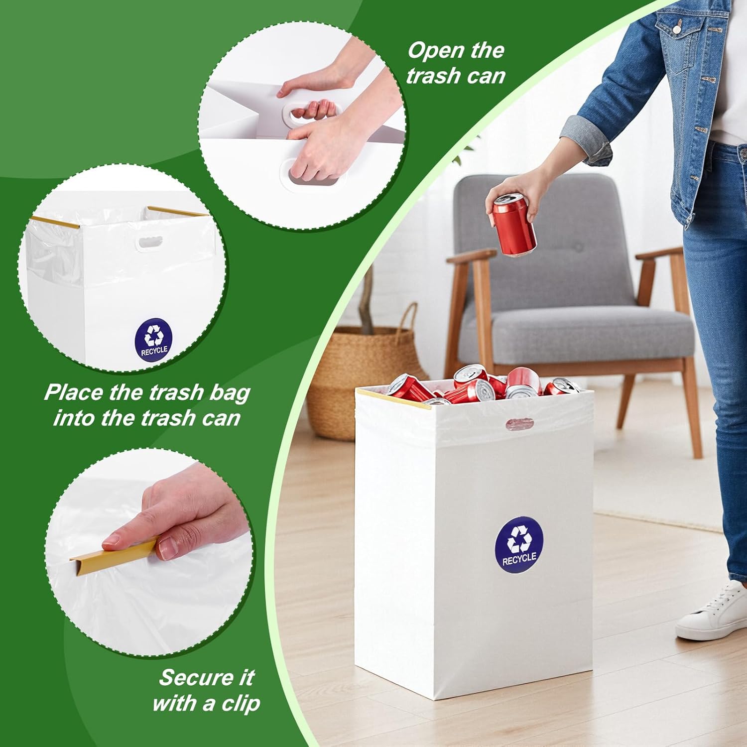 Features: Simplify cleanup for your big event with our 6 pack of large disposable trash cans. Each 30 gallon garbage bin is made from thick, recycling cardboard and features a built-in handle for easy carrying when full. Suitable for parties, gatherings, or moving days, these white bins offer a practical and portable waste solution Specifications: Material: Disposable trash cans: cardboard Garbage bags: plastic Color: white Size: Disposable trash cans: about 16.5 x 13.8 x 25.6 inches / 42 x 35 x 65 cm Garbage bags: about 31.5 x 39.4 inches/ 80 x 100 cm Package includes: 16 x Disposable trash cans 20 x Garbage bags 6 x Tags set 32 x Folders Notes: Manual measurement, please allow slight errors on size. The color may exist a slight difference due to different screen displays.