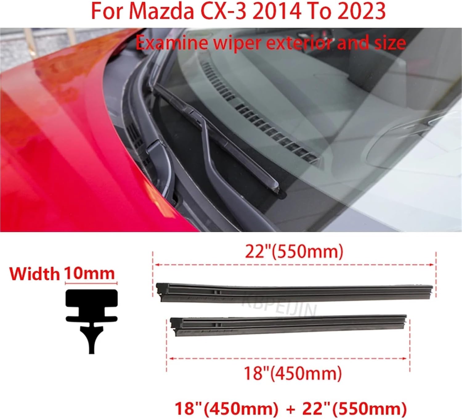 Windshield Wipers & Parts1Set Car Wiper Blade Insert Rubber Refill Strips Package Include:1Set Rubber Refill Strips Color:BlackDimensions:Length 14"(450mm)/22"(550mm) Width 10mm Height 13mmWeight: Approx 64.4gPackage Weight: Approx 76gFor Three section wipersHign-concerned Chemical : NoneItem Weight : 64.4gItem Height : 13mmItem Width : 10mmMaterial : Natural rubberSize: 18"(450mm) + 22"(550mm)