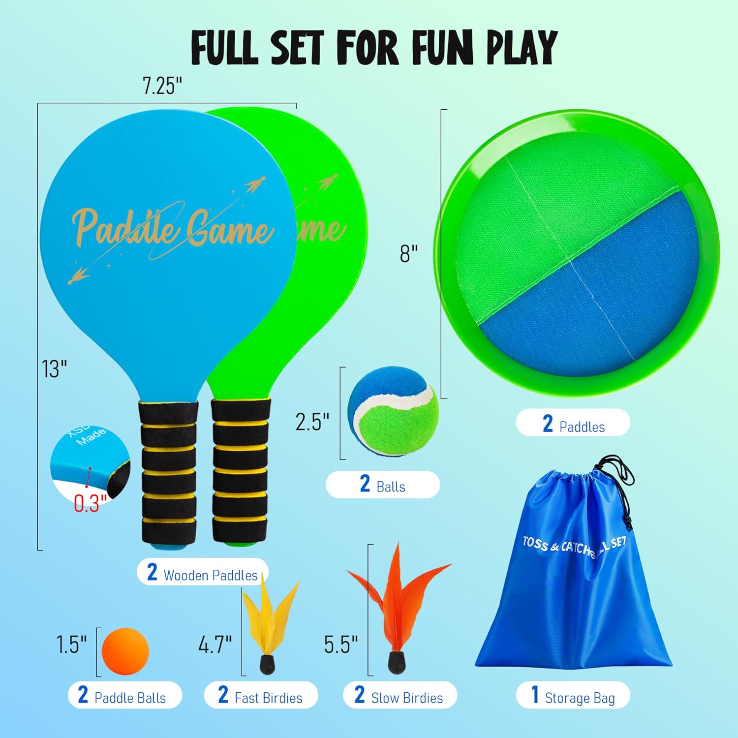 TEILLNET 2-in-1 Beach Paddle Ball and Toss Catch Ball Game Set, Summer Outdoor Toys for Kids Adults, Family Yard Lawn Beach Pool Park Games, Outside Sports Easter Basket Stuffers Gifts for Boys Girls