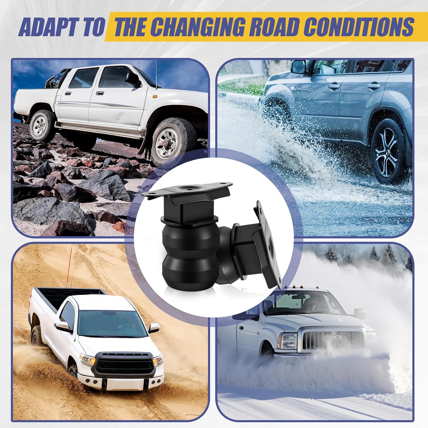 Features: These bump stops for suspension are designed to absorb harsh impacts from potholes or uneven roads. By cushioning the contact between the axle and the frame, they help shield other suspension components from excessive stress. Experience a more controlled ride with these bump stoppers. They work to minimize excessive body roll and sway, especially when driving with a load. Specifications: Material: rubber Color: black Size: about 6.9 x 3.7 inches/ 17.5 x 9.4 cm Package includes: 2 x Bump stops 2 x Rubber bases 1 x Set of corrosion resistant hardware Notes: Manual measurement, please allow slight errors on size. The color may exist a slight difference due to different screen displays