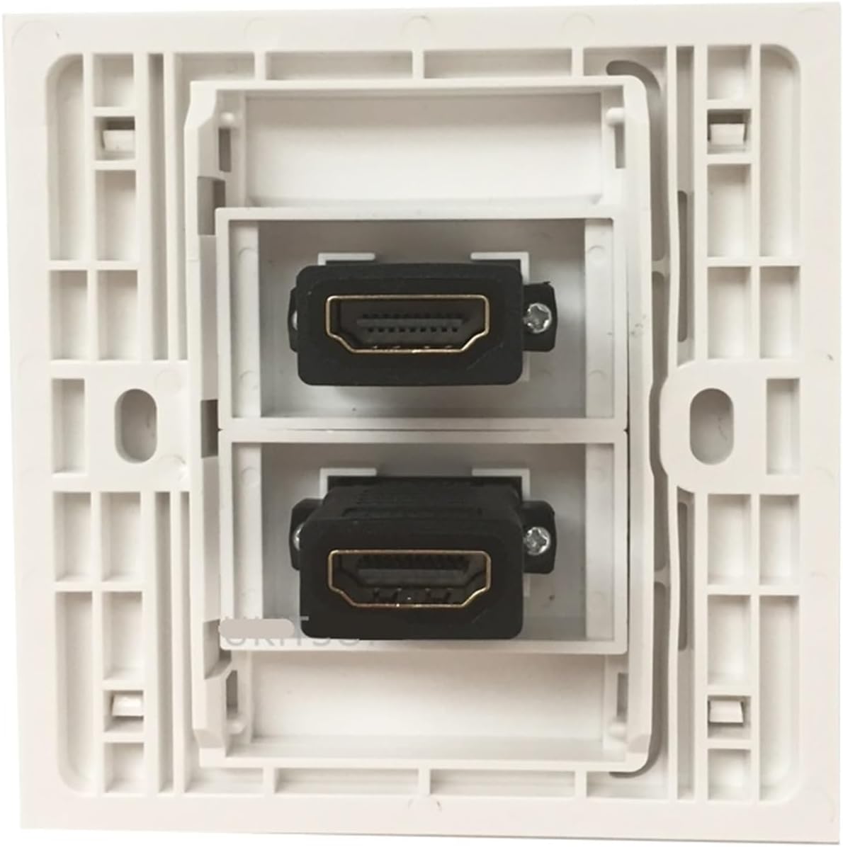 Wall Plates & ConnectorsColor: WhitePorts: HDMI + HDMI- HDMI version: 2.0Dimensions: 86x86mm.Panel material: plasticEasy to install and connectScrew hole distance: 60mmInstallation: Female to female connectionSize: 86x86mmMounting screw hole distance: 60mmPort: HDMI2.0+HDMI2.0