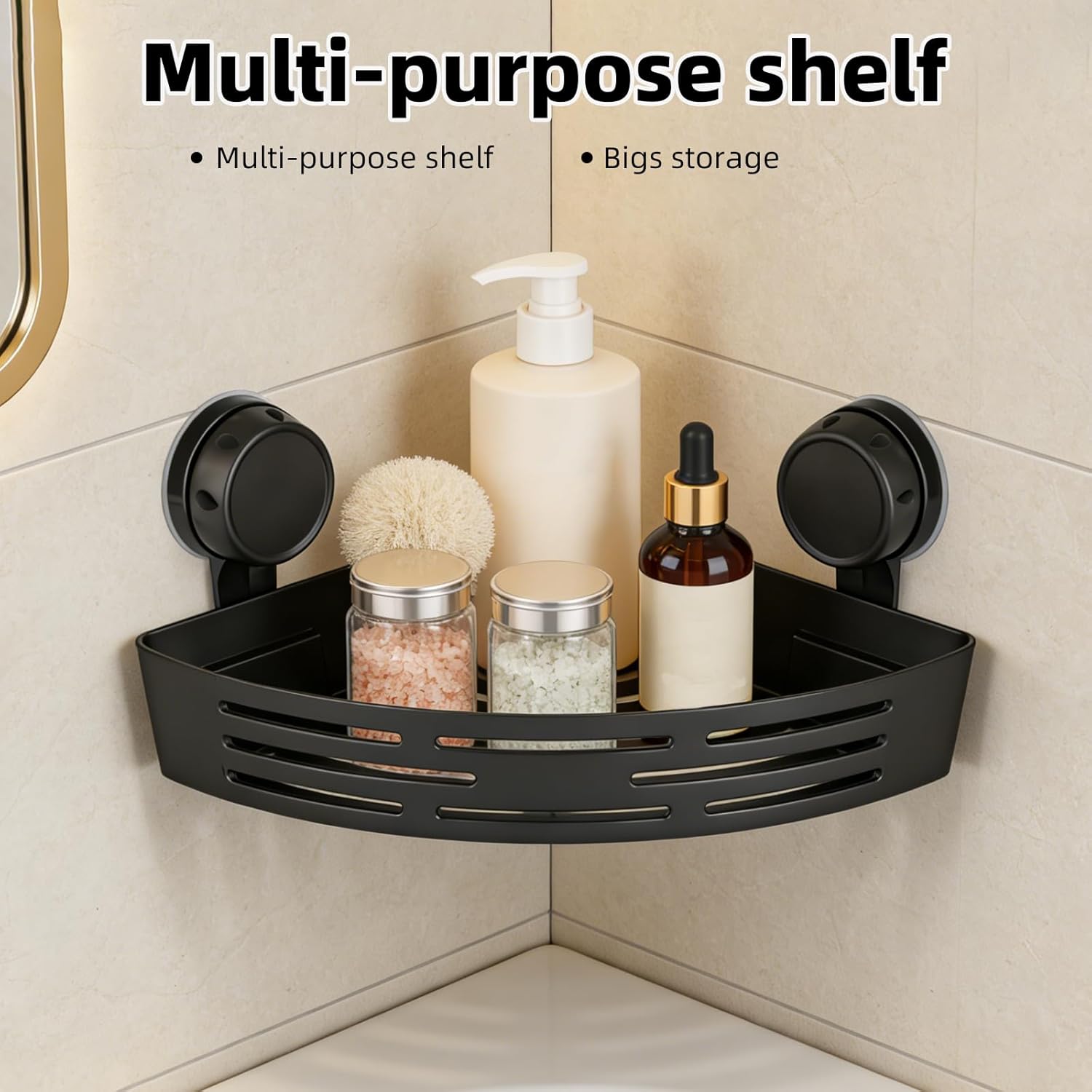 2026 New Corner Shower Shelf Suction Cup Shower Caddy, No Drilling Bathroom Storage Rack, Corners Organizer Storage Rack Adhesive with Towel Bar (Black three-layer)1.No-drill install with strong suction cups.2.Adjustable height for custom spacing.3.Drain holes prevent water buildup.4.Holds up to 40 lbs securely.Note:1. Due to manual measurements, please allow slight measurement deviations.2. Due to the different display and lighting effects, the actual color of the item may be slightly different from the color displayed on the picture