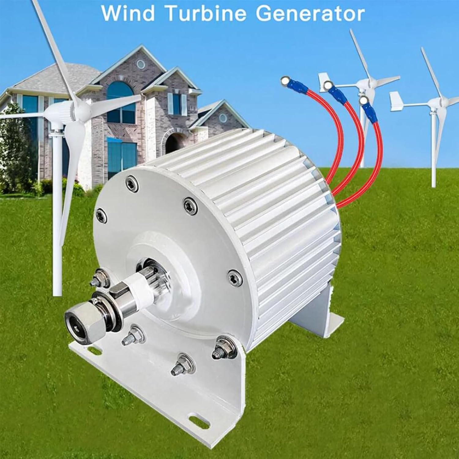 Specification: color: White Rated Power:15000W Rated Voltage: 12V 24V 48V 220V (optional) Rated Speed: 500rpm Rated Frequency: 50Hz Starting torque:0.42N*m Rated torque:8N*m Material: Spindle and housing:Carbon steel Magnetic steel:Rare earth neodymium iron boron material Others: Efficiency:≥85% Working temperature rise:≤70℃ Operation Temperature:-40℃ — 120℃ Lubrication Method: Filling Grease Service life:≥20 Years Weight: 7.5kg product content: 1 x motor with base