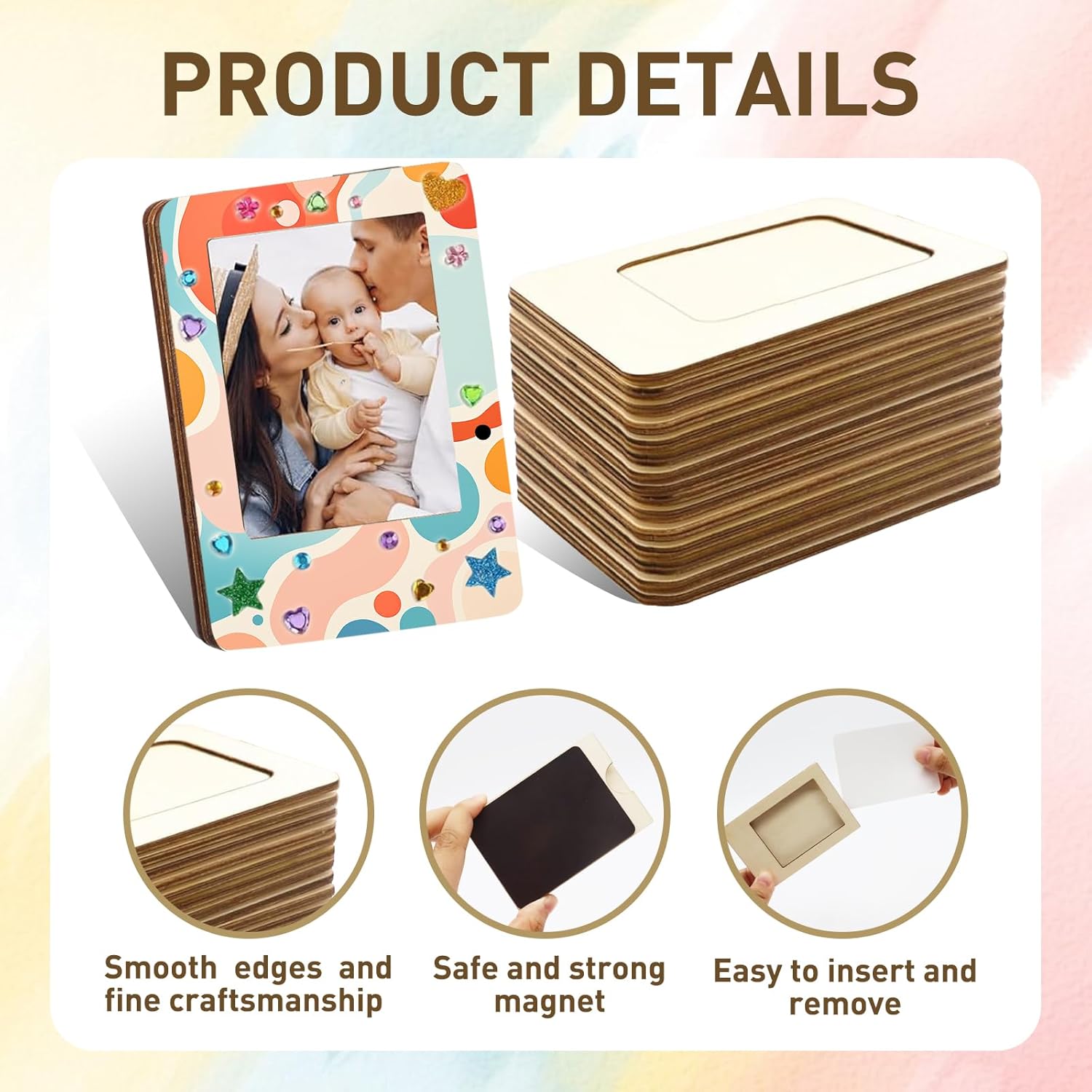 24 Pack DIY Wooden Magnetic Photo Frames for Homemade Wooden Craft Blank appearance: Use your imagination to create your own unique design on the blank pencil holder surface. Rich quantity: Each set contains 24 blank wooden frames, enough for many people to make multiple times. Suitable for all ages: Crafts suitable for children, teenagers, adults, and seniors to make together! If you have any questions, please feel free to leave us a message, and we will reply as soon as possible.