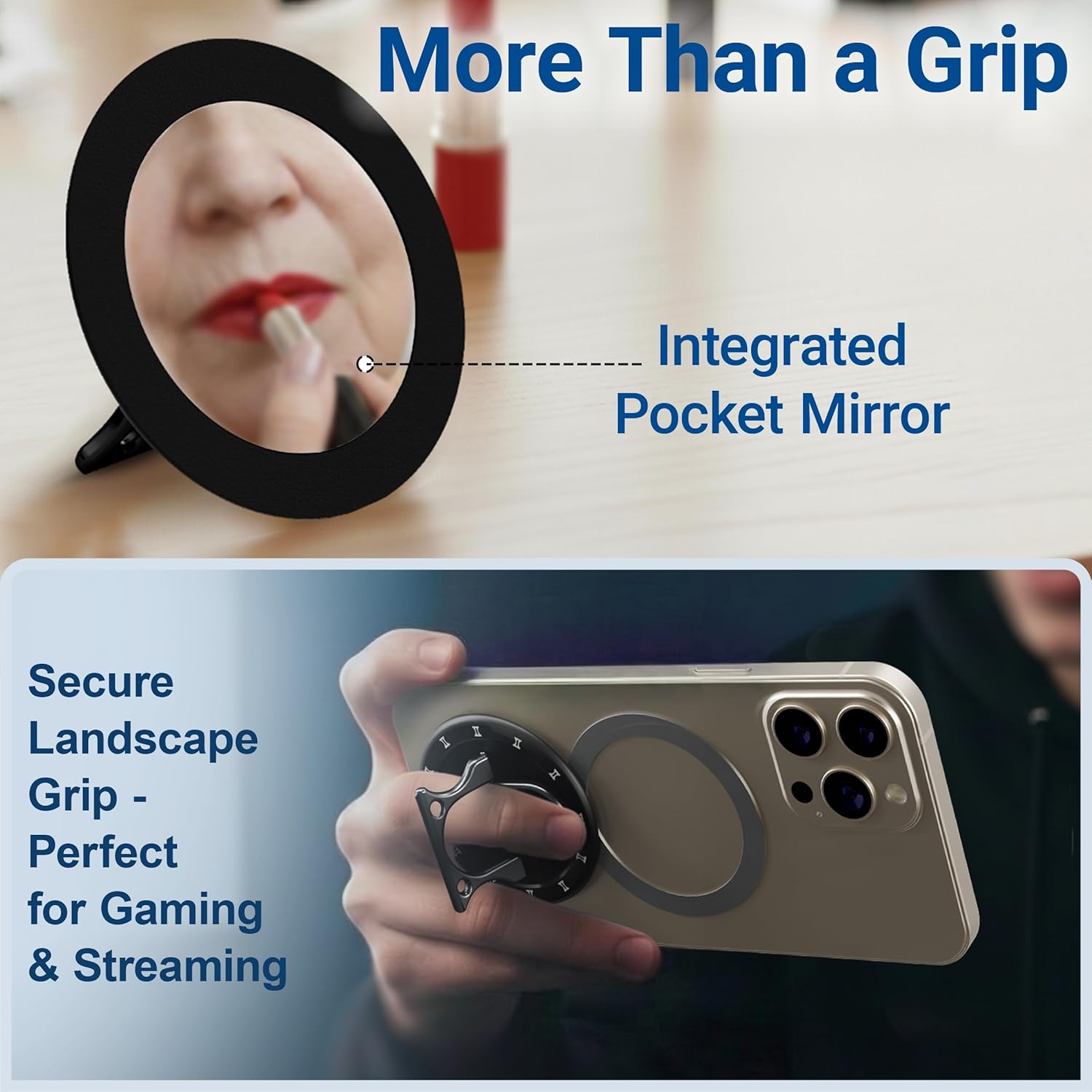 | Other Special Features of the Product | 360 Degree Rotation, Built-in Mirror, Includes Mobi Handle phone grip kickstand, Magnetic, Wireless Charging Compatible |