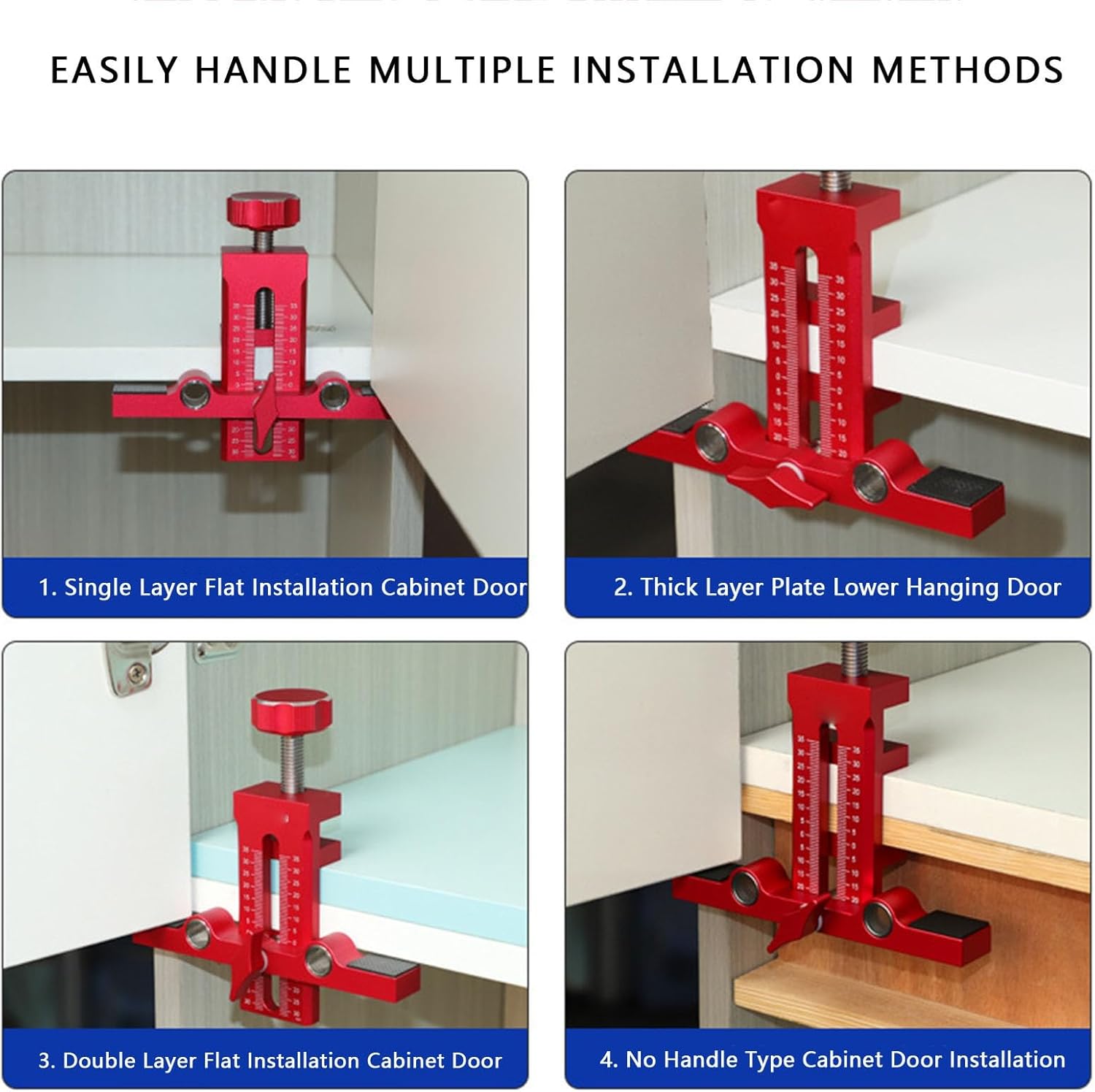 Production Description:This 3 in 1 cabinet door mounting jig is designed to assist with the precise installation of cabinet and wardrobe doors. Constructed from aluminum alloy, it features an adjustable support arm and an integrated clamp to help position and hold doors during hinge attachment. Suitable for various door styles and thicknesses, it includes 6mm, 8mm, and 10mm auger bits, aiming to streamline the installation process for DIY enthusiasts and woodworkers.Specification:Item Type: Cabinet Door Mounting JigProduct Material: Aluminum AlloyCabinet Door Up and Down Adjustment: Approx. 0-30mm / 0-1.2inClamping Thickness: Approx. 7-40mm / 0.3-1.6inDrill Bits: 6mm/8mm/10mm Auger BitApplication: Suitable for Single Layer Flat Suspended Door, Single Layer Downward Extending Door, Double Layer Flat Suspended Door, No Handle Downward Extending Door. Not Suitable for Floor Cabinet, Lower Cabinet DoorsPackage List:1 x Cabinet Door Mounting Jig3 x Drill Bits3 x Accessories2 x Drill Bushings1 x Wrench