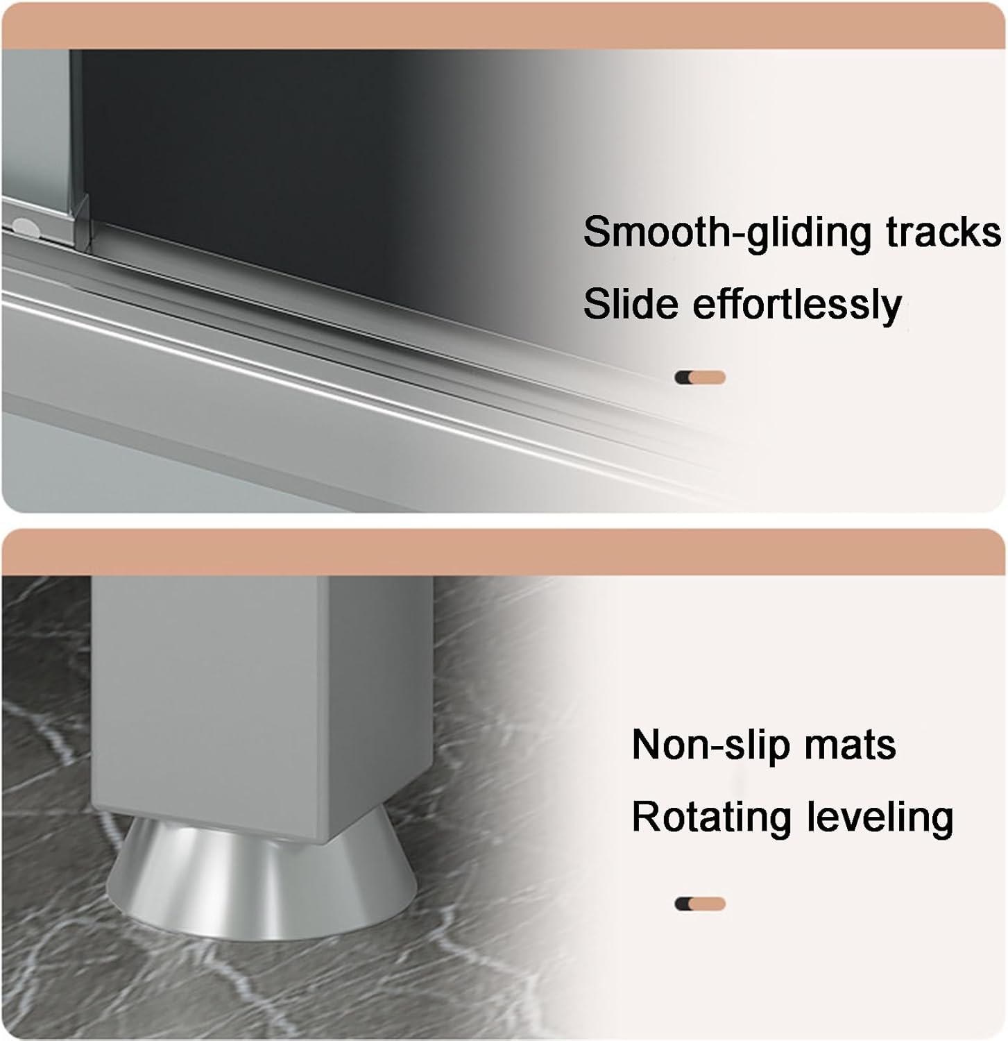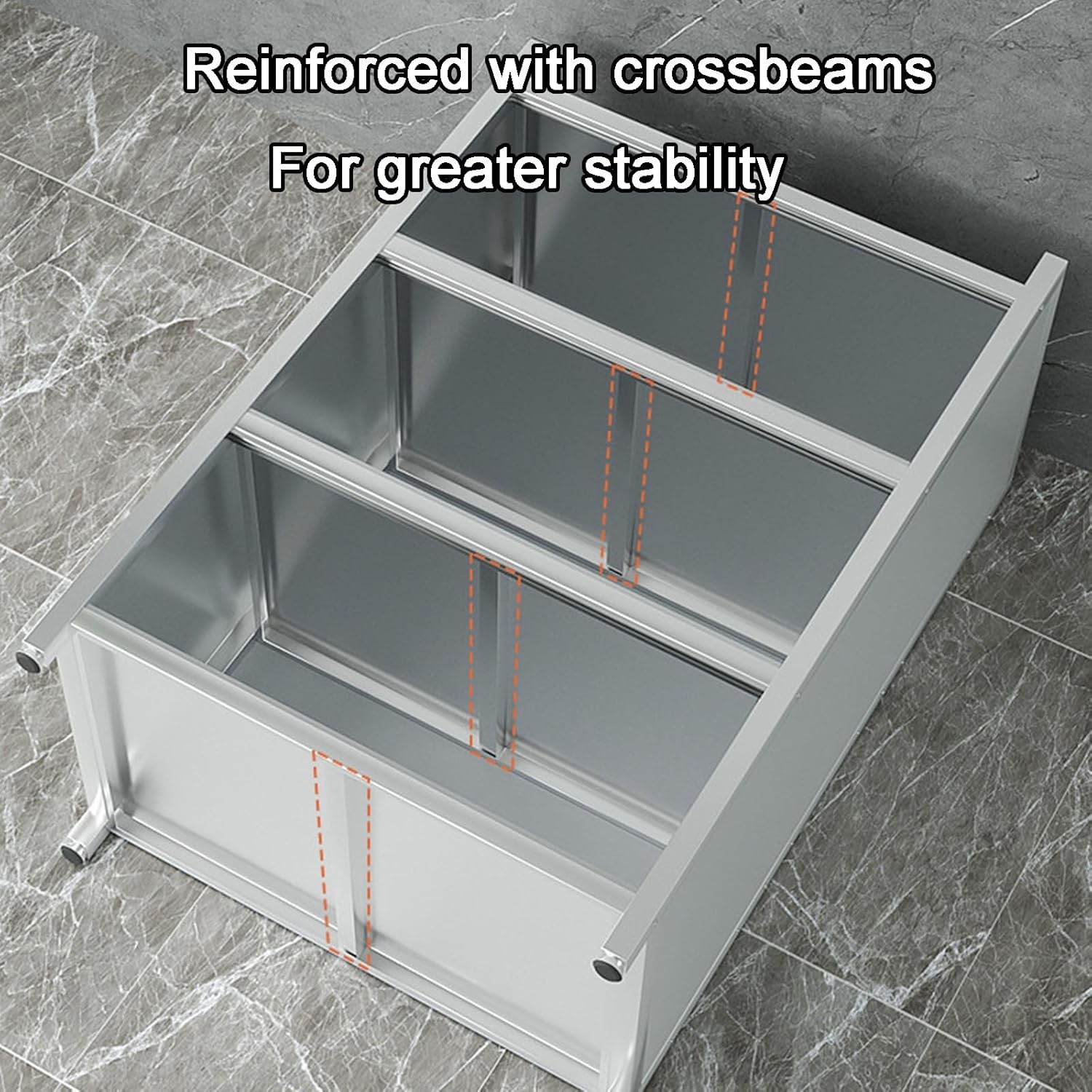 Product Name: Stainless Steel WorkbenchProduct Color: SilverProduct Material: Stainless SteelAssembly Required: YesProduct Dimensions:L60xW42xH95cm(23.6x16.5x37.4in)L60xW52xH95cm(23.6x20.5x37.4in)L70xW42xH95cm(27.6x16.5x37.4in)L70xW52xH95cm(27.6x20.5x37.4in)L80xW42xH95cm(31.5x16.5x37.4in)L80xW52xH95cm(31.5x20.5x37.4in)L90xW42xH95cm(35.4x16.5x37.4in)L90xW52xH95cm(35.4x20.5x37.4in)L100xW42xH95cm(39.4x16.5x37.4in)L100xW52xH95cm(39.4x20.5x37.4in)Product Contents: Stainless Steel Workbench * 1 + Installation Accessories (Other accessories not included)Product FeaturesSide panels, back panel, and door panels are made of brushed stainless steel; handles are made of aluminum alloy; worktop is made of stainless steel composite panelRaised design on both sides of the top to avoid items from falling off; non-slip foot pads; height-adjustable;Sliding cabinet doors with smooth tracks; fully enclosed design; requires assemblyImportant Notes:1. Product dimensions may vary slightly due to differences in measuring tools.2. Colors may appear slightly different due to photography techniques and lighting conditions.3. This product is manufactured using stainless steel welding, which may result in minor scratches and weld marks. These do not affect the product’s normal use.