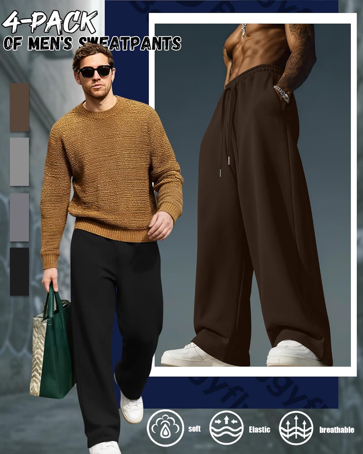 Features: Versatile Style: These casual sweatpants for men can be paired with t-shirts, jackets, sweatshirts, sweaters, and hoodies to create a clean and neat everyday look. Easy Care: Machine washed or hand washed in cold water on a gentle cycle, hang to dry, and will not shrink easily after multiple washes. Do not bleach. Specifications: Material: 60% Cotton, 35% Polyester, 5% Spandex Package includes: 4 Pack men's sweatpants with pockets Notes: Manual measurement, please allow slight errors on size. The color may exist a slight difference due to different screen displays