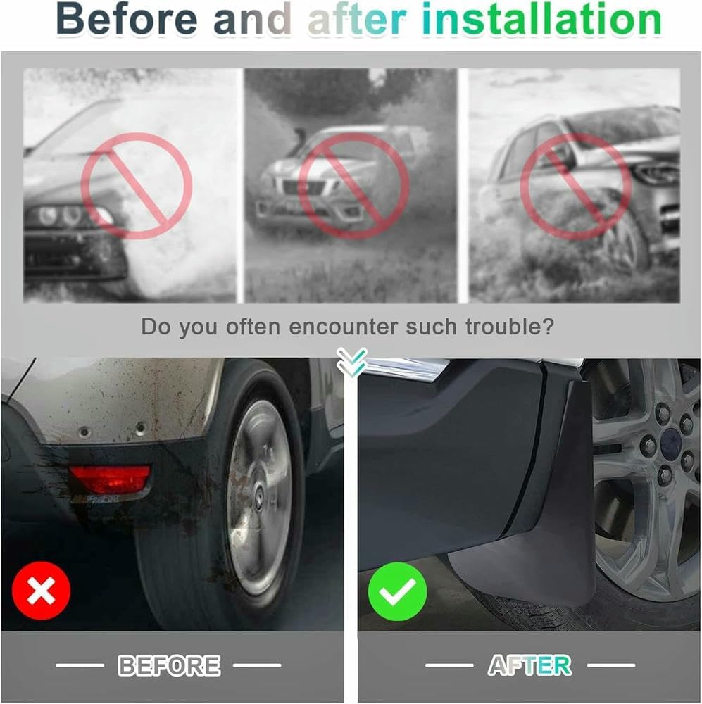 WHY DO YOU WANT TO INSTALL CAR MUDGUARDS?1.The original car lacks the protection of mudguards, and the muddy muds encountered in the rainy days will splash the car body.2.IN THE RAIN OR MUDDY ROAD, IS THE CAR FULL OF MUD?3.The body is smashed into difficult to remove stains is not very troublesome, no fenders really can not afford to hurt, muddy water, scratching paint.4.fenders effectively protect the bottom of your car from snow, salt, sand, dirt, mud, stones and other foreign objects thrown from the wheels, thus minimizing the risk of dust.Specification:Product name : Car MudguardsApplicable position: front and rear wheelsMaterial: ABS plastic【Installation instructions】:1.Please look at the back of the mud flaps. There are words showing directions:left front, right front, left rear, right rear.2.In installation, original screws of the corresponding parts in the car should be removed firstly.3.Make sure that the mud flaps are well placed to protect corresponding parts of the car.4. As for very few car models, if the original car don't have screw holes, please directly rotate our self-tapping screws into your car.【Package included】:4 x Mud Flaps(2 pcs Front L/R , 2 pcs Rear L/R)1 x a Bag Of Screw FixingsNote:1.Please check the model number in the picture and text carefully before placing an order, make sure your car model is correct
