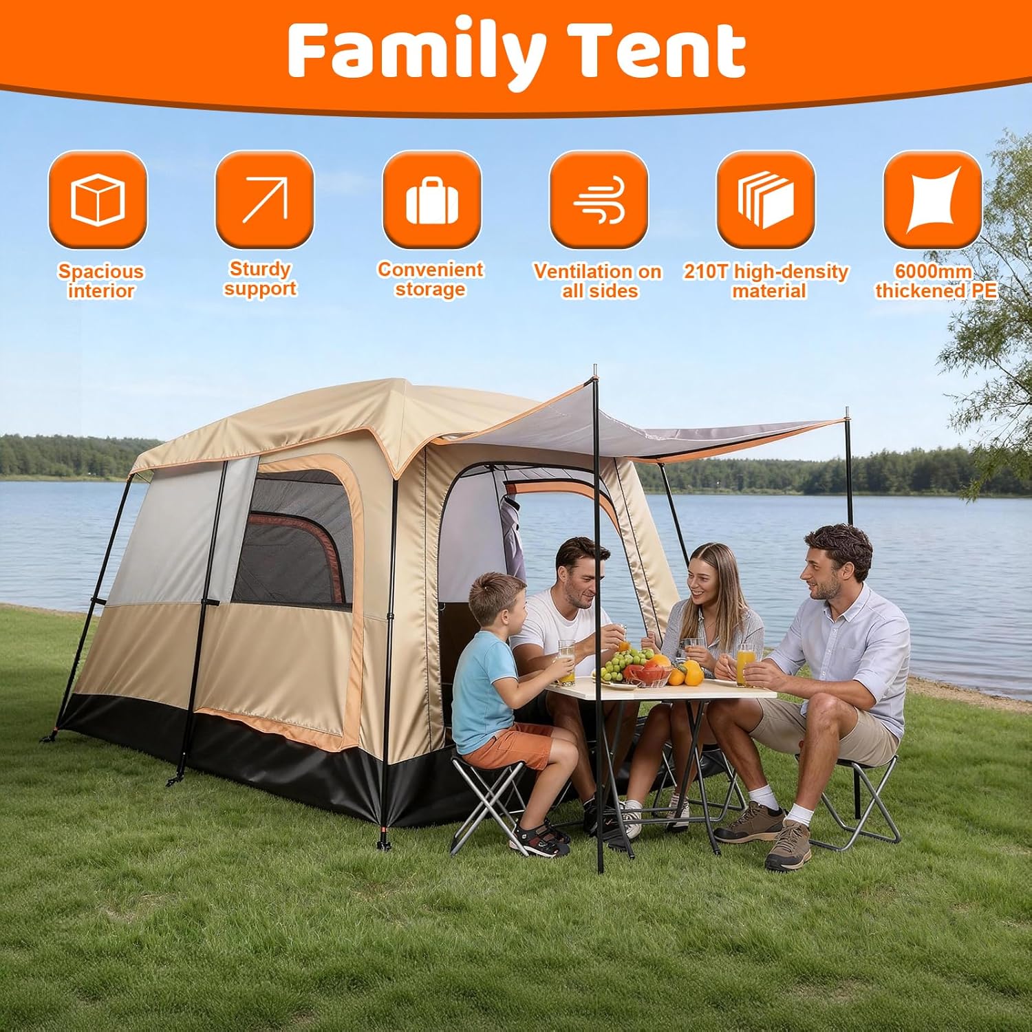 Specification: Item Type: Camping Tent Material: Inner Tent: 210T Water Jet Compacted Polyester 4500mm Outer Tent: 210T Compacted Polyester, High Density Mesh Floor: 6000mm Water Jet Thickened Wear Proof PE Package List: 14 x Pegs 8 x Straps 1 x Peg Storage Bag 1 x Pole Storage Bag 1 x Tent Storage Bag 11 Sets x Pole Components 2 x Instruction Manuals 1 x Inner Tent 1 x Outer Tent