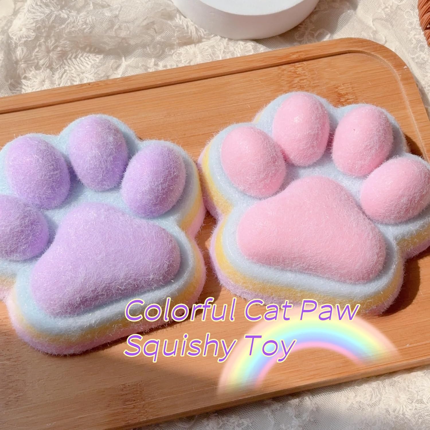 Adorable cat paw shape, super cute and playful.Perfect 5-inch size, fits snugly in your hand.Provides instant comfort and relaxation.Great for quick stress relief.Portable and easy to carry anywhere.Ideal for both adults and squishy toy enthusiasts.Adds a smile to your day, on desk or on the go.A charming and practical gift option.Collectible and fun, perfect for any occasion.