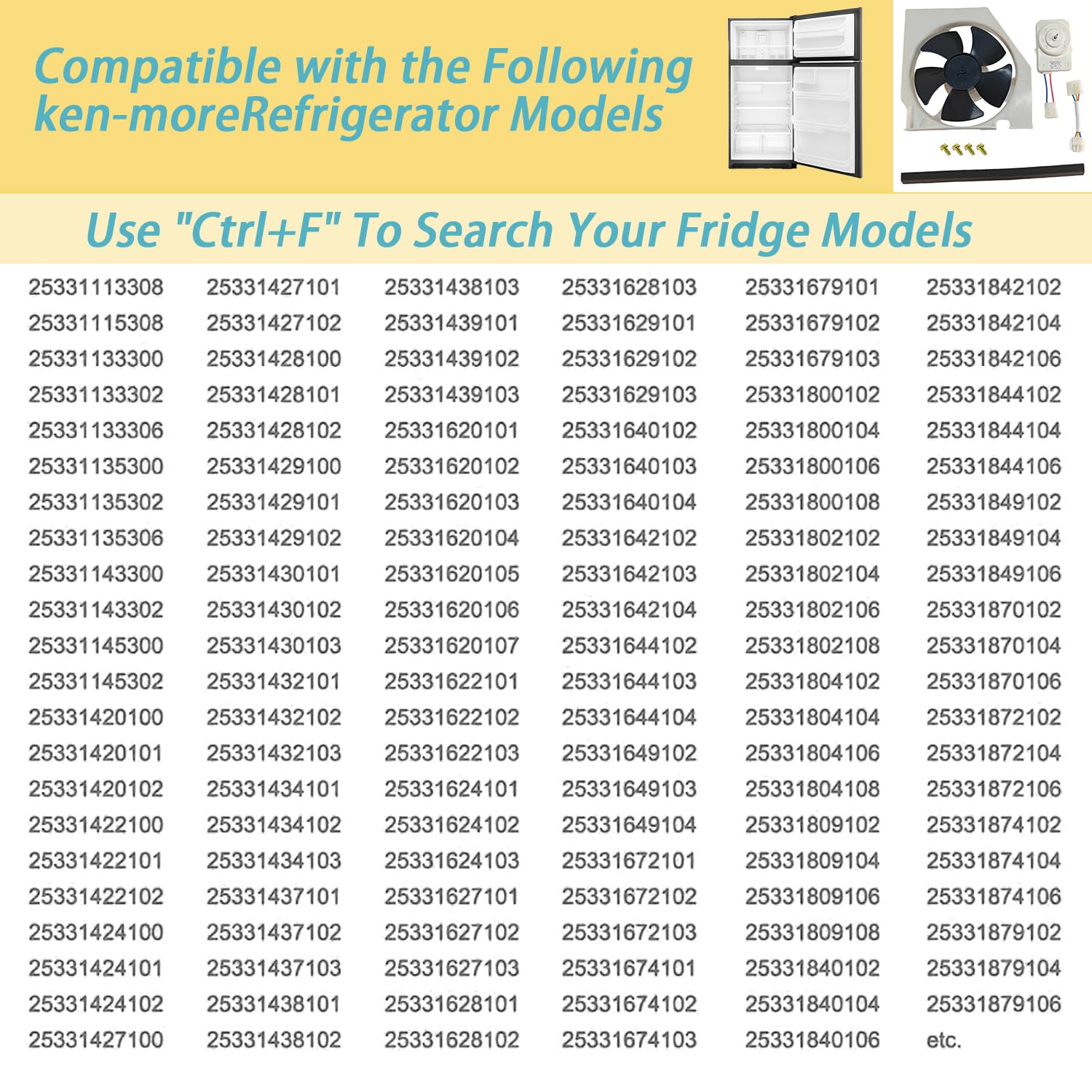 This 5303918774 refrigerator fan motor component has undergone rigorous testing to ensure reliable operation and long-term stability. It effectively restores and maintains the optimal functionality of the refrigerator, giving you complete peace of mind. It can effectively solve the following problems:1.Abnormal Noises: Unusual humming, buzzing, or grinding sounds during operation.2.Poor Cooling: Insufficient cooling performance or a complete lack of cooling.3.Frost Buildup: Excessive frost accumulation on the evaporator coils.4.Inconsistent Temperature: The refrigerator compartment temperature is abnormally high or fluctuating.5.Restricted Fan: The evaporator fan is stuck, blocked by frost, or fails to spin freely.6.Aged Component: The existing evaporator fan motor is old, worn out, or physically damaged. Wide compatibility(You can use CTRL+F to quickly search) Compatible with Kenmore:25331113308; 25331115308; 25331133300; 25331133302; 25331133306; 25331135300; 25331135302; 25331135306; 25331143300; 25331143302; 25331145300; 25331145302; 25331420100; 25331420101; 25331420102; 25331422100; 25331422101; 25331422102; 25331424100; 25331424101; 25331424102; 25331427100; 25331427101; 25331427102; 25331428100; 25331428101; 25331428102; 25331429100; 25331429101; 25331429102; 25331430101; 25331430102; 25331430103; 25331432101; 25331432102; 25331432103; 25331434101; 25331434102;25331434103; 25331437101; 25331437102; 25331437103; 25331438101; 25331438102; 25331438103; 25331439101; 25331439102; 25331439103; 25331620101; 25331620102; 25331620103; 25331620104; 25331620105; 25331620106; 25331620107; 25331622101; 25331622102; 25331622103; 25331624101; 25331624102; 25331624103; 25331627101; 25331627102; 25331627103; 25331628101; 25331628102; 25331628103; 25331629101; 25331629102; 25331629103; 25331640102; 25331640103; 25331640104; 25331642102; 25331642103; 25331642104;25331644102; 25331644103; 25331644104; 25331649102; 25331649103; 25331649104; 25331672101; 25331672102; 25331672103; 25331674101; 25331674102; 25331674103; 25331679101; 25331679102; 25331679103; 25331800102; 25331800104; 25331800106; 25331800108; 25331802102; 25331802104; 25331802106; 25331802108; 25331804102; 25331804104; 25331804106; 25331804108; 25331809102; 25331809104; 25331809106; 25331809108; 25331840102; 25331840104; 25331840106; 25331842102; 25331842104; 25331842106; 25331844102;25331844104; 25331844106; 25331849102; 25331849104; 25331849106; 25331870102; 25331870104; 25331870106; 25331872102; 25331872104; 25331872106; 25331874102; 25331874104; 25331874106; 25331879102; 25331879104; 25331879106; 25344723100; 25344733103; 25344823600; 25344833600; 25344833601; 25351232101; 25351232102; 25351232103; 25351232104; 25351232105; 25351232106; 25351234101; 25351234102; 25351234103; 25351234104; 25351234105; 25351234106; 25351392101; 25351392102; 25351392103; 25351392104;25351392105; 25351392106; 25351394101; 25351394102; 25351394103; 25351394104; 25351394105; 25351394106; 25351399101; 25351399102; 25351399103; 25351399104; 25351399105; 25351399106; 25351622100; 25351622101; 25351622102; 25351622103; 25351622104; 25351624100; 25351624101; 25351624102; 25351624103; 25351624104; 25352322200; 25352322201; 25352322202; 25352322203; 25352324200; 25352324201; 25352324202; 25352324203; 25352332200; 25352332201; 25352334200; 25352334201; 25352339200; 25352339201; 25352342300; 25352342301; 25352344301; 25352349300; 25352349301; 25352349302; 25352612200; 25352612201; 25352612202; 25352614200; 25352614201; 25352614202; 25353212301; 25353213300; 25353213301; 25353214301; 25353219301; 25353222300; 25353222301; 25353223300; 25353223301; 25353224300; 25353224301; 25353229300; 25353229301; 25353322300; 25353322302; 25353322303; 25353324300; 25353324302; 25353324303; 25353324305; 25353372300; 25353372301; 25353373300; 25353373301; 25353373302; 25353374300;25353374301; 25353379300; 25353379301; 25353379302; 25353612300; 25353612301; 25353612302; 25353612303; 25353614300; 25353614301; 25353614302; 25353614303; 25353622300; 25353622301; 25353622302; 25353624300; 25353624301; 25353624302; 25353624303; 25353682300; 25353684300; 25354332300; 25354339300; 25354342300; 25354343300; 25354344300; 25354349300; 25354362403; 25354362404; 25354362405; 25354362406; 25354363403; 25354363404; 25354363405; 25354363409; 25354364403; 25354364404; 25354364405;25354364406; 25354364408; 25354364409; 25354369403; 25354369404; 25354369405; 25354369406; 25354372300; 25354373300; 25354374300; 25354379300; 25354622400; 25354622401; 25354622402; 25354622406; 25354622407; 25354622408; 25354622409; 25354623400; 25354623401; 25354623402; 25354623403; 25354623406; 25354623407; 25354623408; 25354623409; 25354624400; 25354624401; 25354624402; 25354624406; 25354624407; 25354624408; 25354624409; 25354628501; 25354628503; 25354628504; 25354628505; 25354628506;25354629400; 25354629401; 25354629402; 25354629406; 25354629407; 25354629408; 25354629409; 25354632500; 25354632502; 25354633500; 25354633502; 25354639500; 25354639502; 25355333600; 25355333602; 25355333603; 25355333604; 25355333605; 25355333606; 25356272403; 25356272404; 25356272405; 25356272406; 25356272407; 25356272408; 25356272409; 25356273403; 25356273404; 25356273405; 25356273406; 25356273408; 25356273409; 25356274403; 25356274404; 25356274405; 25356274406; 25356274407; 25356274408;25356274409; 25356279403; 25356279404; 25356279405; 25356279406; 25356279407; 25356279408; 25356279409; 25356282403; 25356282404; 25356282405; 25356282406; 25356282407; 25356282408; 25356283403; 25356283405; 25356283406; 25356283408; 25356284403; 25356284404; 25356284405; 25356284406; 25356284408; 25356289403; 25356289404; 25356289405; 25356289406; 25356289407; 25356289408; 25356292403; 25356292404; 25356292405; 25356292406; 25356292408; 25356292409; 25356293403; 25356293404; 25356293406; 25356293408; 25356293409; 25356294403; 25356294404; 25356294405; 25356294406; 25356294408; 25356294409; 25356299403; 25356299404; 25356299405; 25356299406; 25356299408; 2