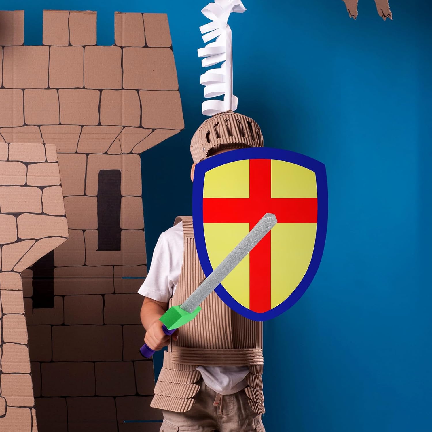 Features: Safety is our top priority. That's why we choose to make our sword and shield from EVA foam. EVA foam is a soft, flexible, and lightweight material known for its safe use in children's items. Parents can rest easy knowing their children are playing with foam swords and shields that are safe, reducing the risk of injury during their imaginative play battles. The foam sword and shield for kids sets stimulate children's creativity and imagination, and our foam swords and shields set does just that. Allow the kids to go on their quests, fighting dragons, protecting their kingdoms, or saving the day. This playset not only offers fun but also helps enhance their cognitive development, social interaction, and critical thinking skills. Specifications: Material: EVA foam Color: multicolored Size: Sword: about 14.5 x 2.5 inches Shield: about 12 x 8.5 inches Package includes: 6 x Foam swords and shields play set Notes: Manual measurement, please allow slight errors on size. The color may exist a slight difference due to different screen displays.