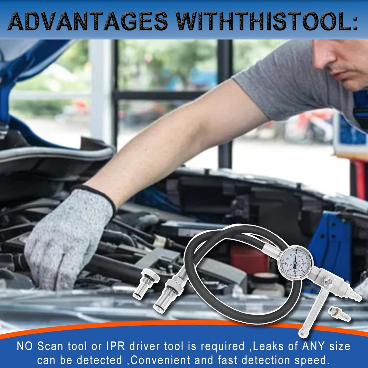 Designed for diagnosing high-pressure oil system leaks on 6.0L-7.3L Powerstroke diesel engines. This tester kit allows quick and accurate leak detection and includes an extra PTFE thread seal tape for improved sealing during installation.