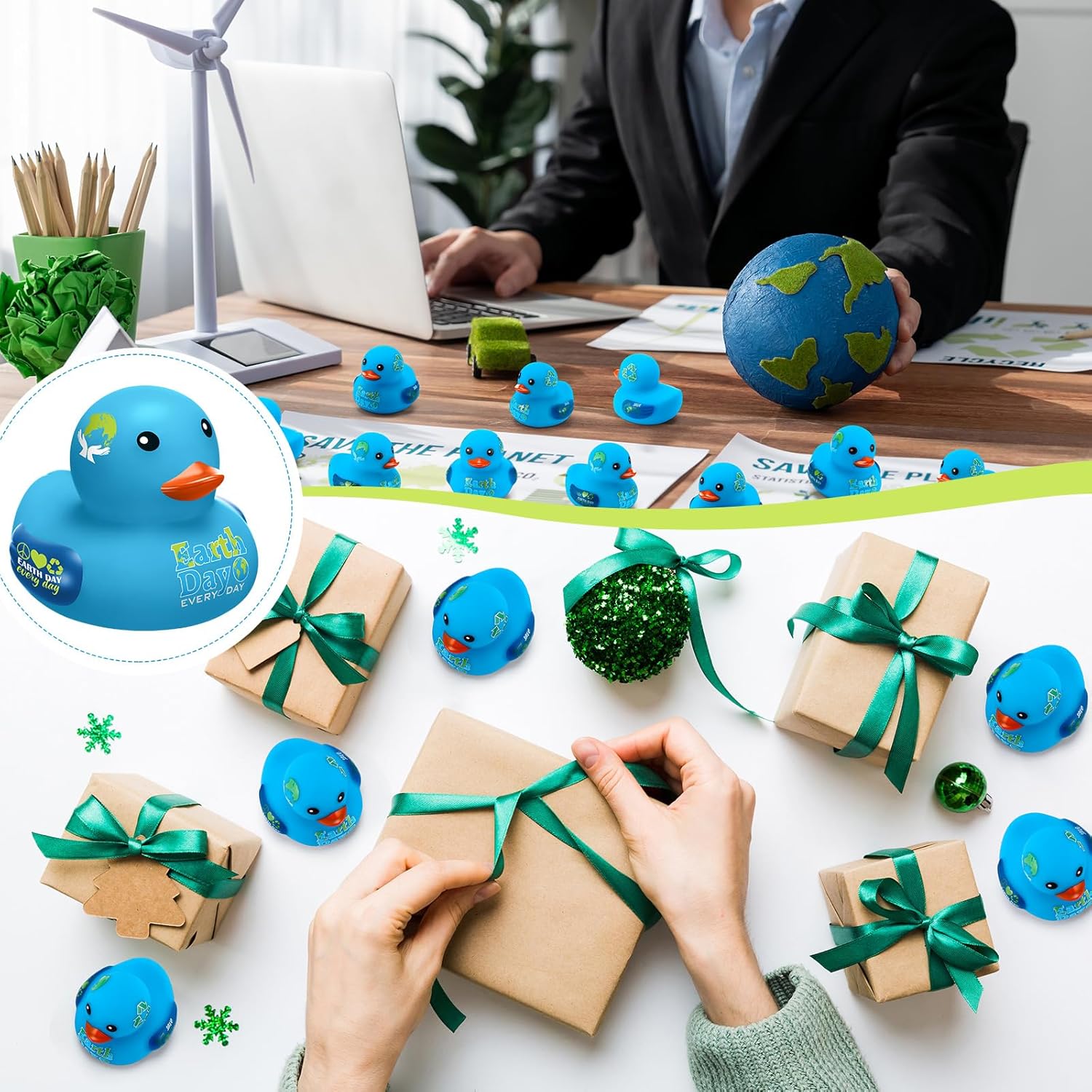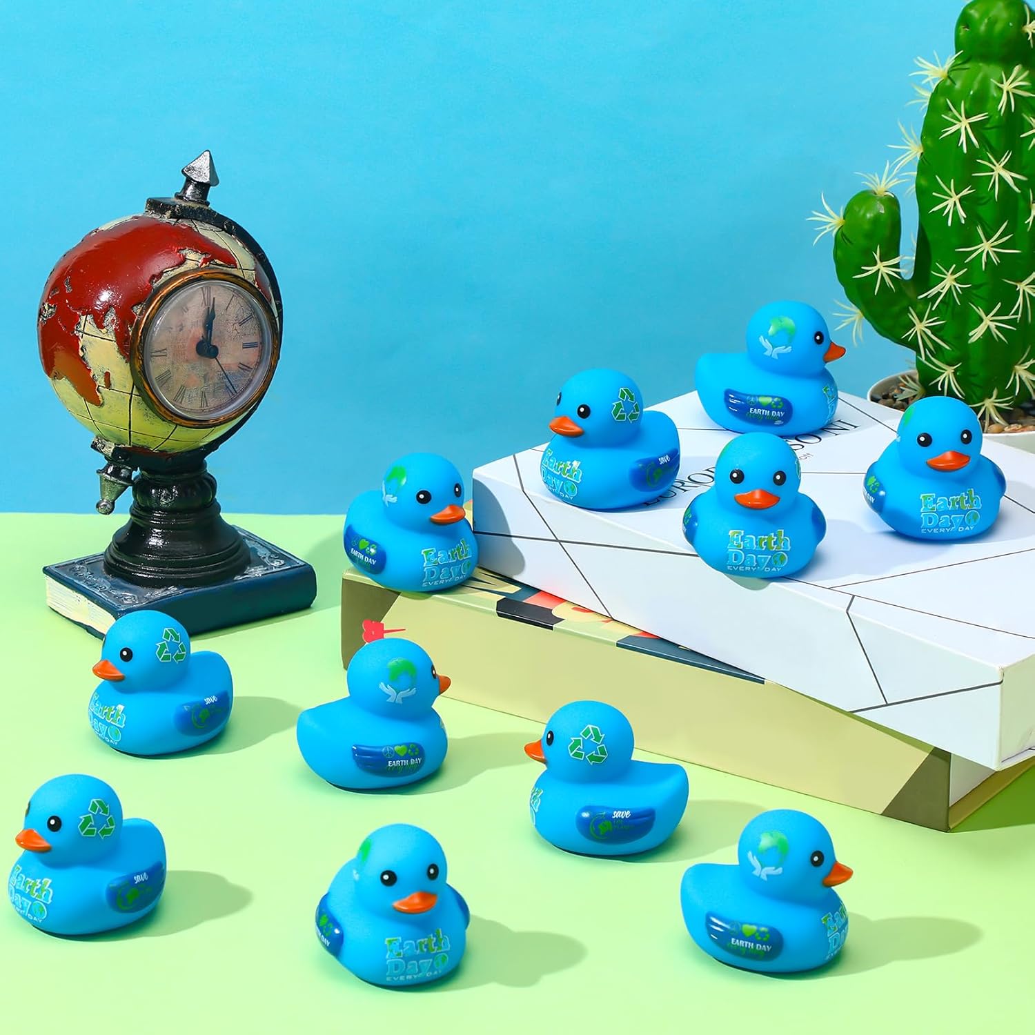 Features: Earth day themed ducks: Reflecting the theme of Earth Day, these rubber ducks are reliable and safe. Made with minimal impact to the environment, these rubber toys depict the essence of recycling, making them the perfect gift for those committed to a sustainable future. Invoking Joy of Celebration: An essential World Earth Day theme accessory, the Earth Day Rubber Duck brings fun and excitement to any celebration. Each intricate design provides a unique depiction of our planet, serving as a humorous yet impactful way of representing Earth Day. The charming rubber ducks make every event memorable, whether it's for classroom activities, party decorations, or special gifts. Specifications: Material: rubber Color: blue Size: approx. 1.89 inches Package includes: 60 x Earth Day Rubber Duck Notes: Manual measurement, please allow slight errors on size. The color may exist a slight difference due to different screen displays.