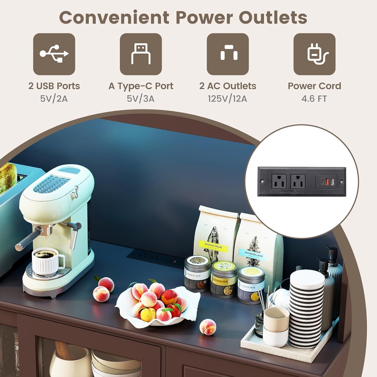 | Model Name | Kitchen Hutch with Power Outlets & Led Lights |