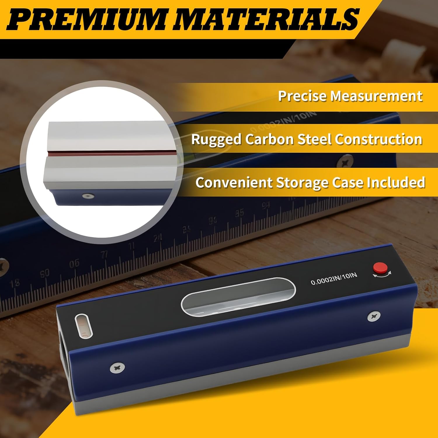 Specification:Material: Carbon steelColor: BlueAccuracy: 0.0002"/10"Size: 8 inchPackage Includes:1 * Precision Master Level1 * Storage Case