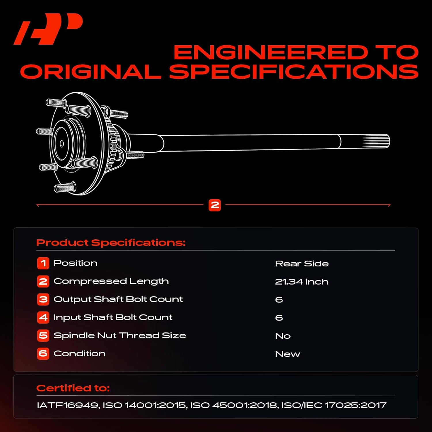 | Special Features | Rear Left and Right CV Axle Shaft Assemblies |