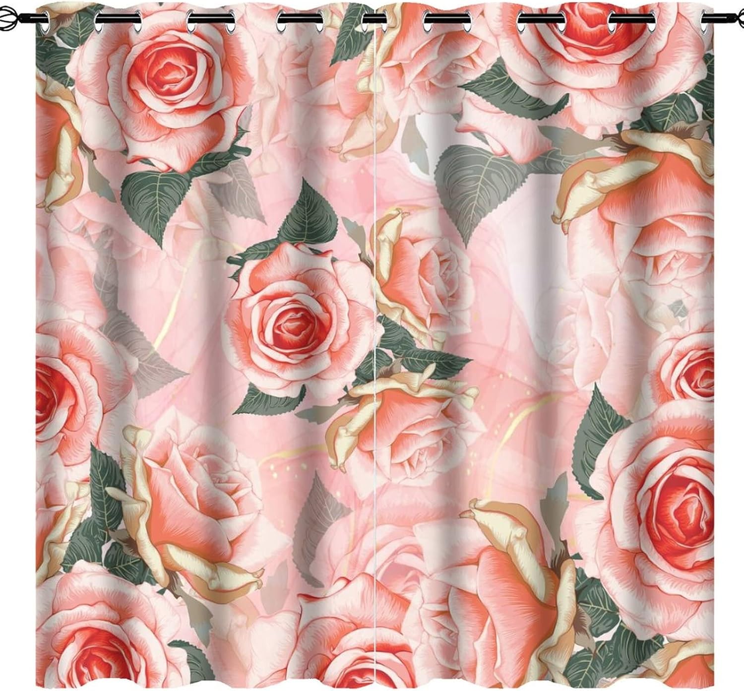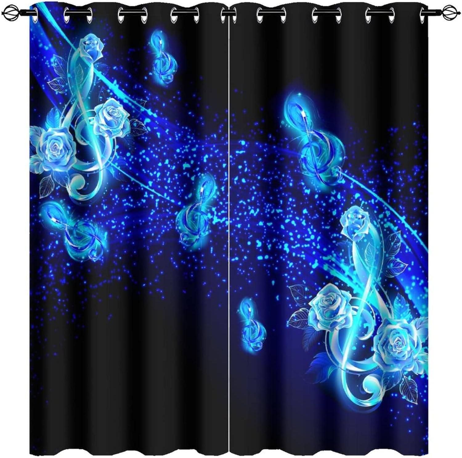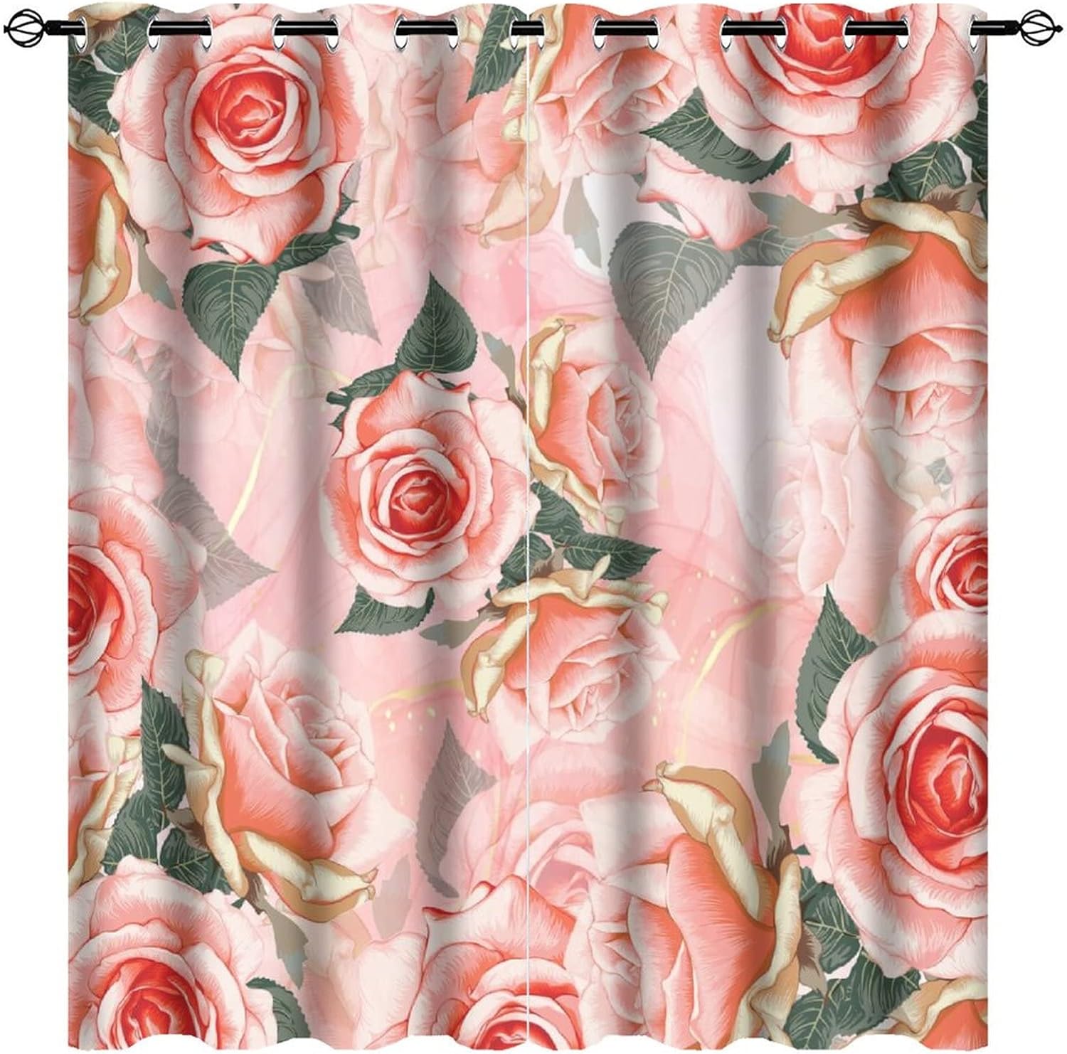 INSFBRB Abstract Turquoise Roses Patterned Blackout CurtainsThis Abstract Turquoise Roses Curtains liven up your indoor or outdoor spaces with a sense of airiness and beauty.Workmanship & Design:Each curtain is machine-made and neatly sewn with no loose threads. Soft, high-quality fabrics ensure long-lasting durability.Beautiful patterns, clever colour matching and advanced printing and dyeing processes for vibrant, fade-free colours.This Vintage Romantic Floral Roses White Gold Leaf Curtains is suitable for: living rooms, bedrooms, boys' rooms, girls' rooms, nurseries, dining rooms, offices, dormitories, window sills, etc.Care instructions.Machine wash in cold water or hand wash, do not bleach, iron at low temperature.Customer service.24 Hours customer support.