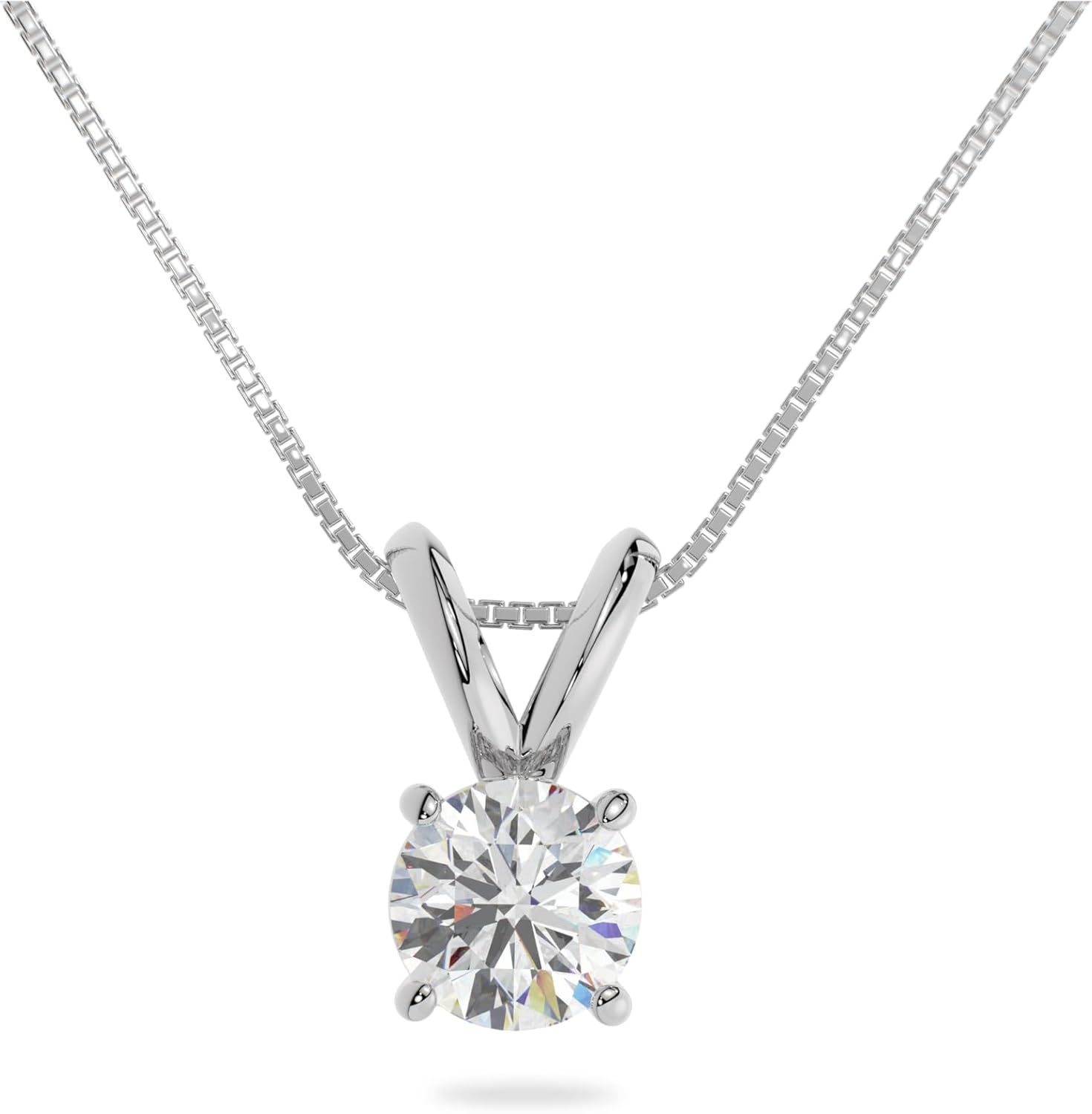 Radiate effortless elegance with these exquisite Lab Grown Moissanite Diamond Pendants. Crafted with a classic 4-prong setting in Solid 14K Gold and an ethically sourced Moissanite gemstone, this pendant captures the light with its captivating twinkle and glimmer, providing a luxurious touch for your everyday look.