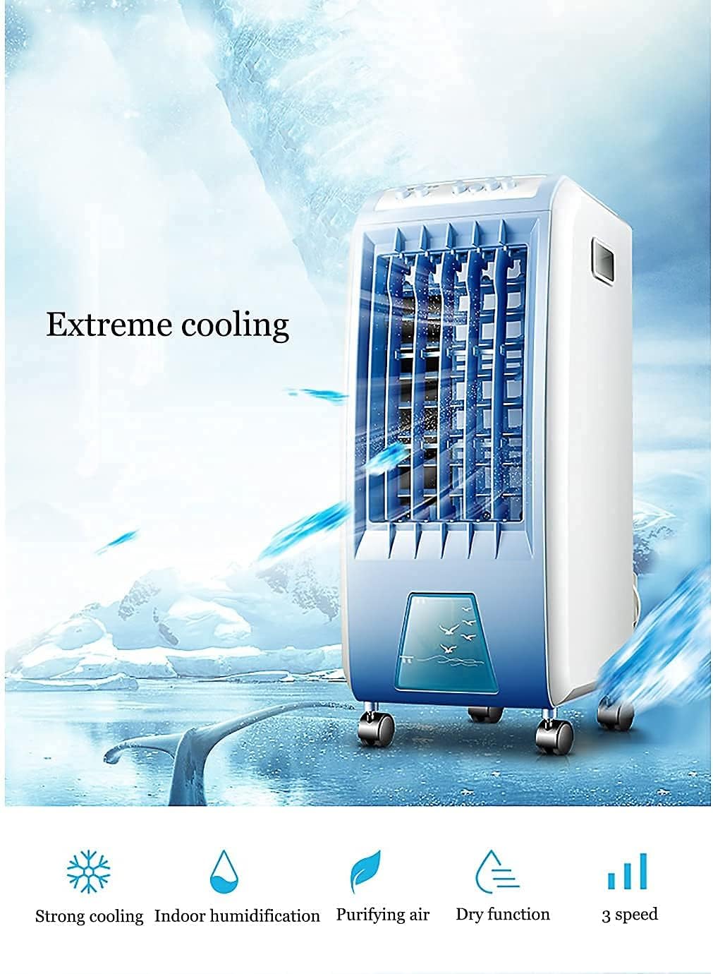 Welcome to My Store Regular Central AC System Is Uselessly Cooling The Entire Building, Wasting Your Money While You Are Sitting In One Place.Now You Can Have Your Personal Cooling Device, Save Your Money With Personal Air Conditioner, It Blows Cooling Wind, Keeps Your Skin Moisture And Enjoy Fresh Air. Product parameters: Air conditioning type: single cold type. Water tank: 5L - 7L Control method: mechanical type. Air supply: natural wind/sleep wind/standard wind. Main operation: activated carbon / photocatalyst. Whether To Support Water Cut Protection: Yes Gear: 3 Gear. Features: - Creat A Personal Cooling Zone - Keep your skin moisture or enjoy fresh air. - No fan blades. - Not free and healthy. Note: 1. Keep The Small Personal Air Conditioner White, Don't Tilt It When Working. 2. Add Pure Water or Household Tap Water,To Avoid Affecting the Cooling function. 3. Add 3/4 water to the tank is the best, do not full filled. 4. Please run out of the water everytime, to prevent the water tank left some scale. 5. Use a cup brush or brush head, clean the water tank in a week, keep it clean and healthy. SATISFACTION GUARANTEE: Any questions, please feel free to contact us anytime. Our Excellent Customer Service Will Answer You Within 24 hours. If you remove any product from us, we will offer the service within 24 hours. Warning: Keep out of reach of children unless supervised by an adult. Do not overfill the water tank. Must be kept on a level surface while use can be used; the unit can drain water from the base. Read the full instruction manual before use. Run time will vary pending on speed setting, room temperature levels, room humidity levels, etc. when not use for extended periods of time, empty the water tank, remove the filter and allow to air dry.