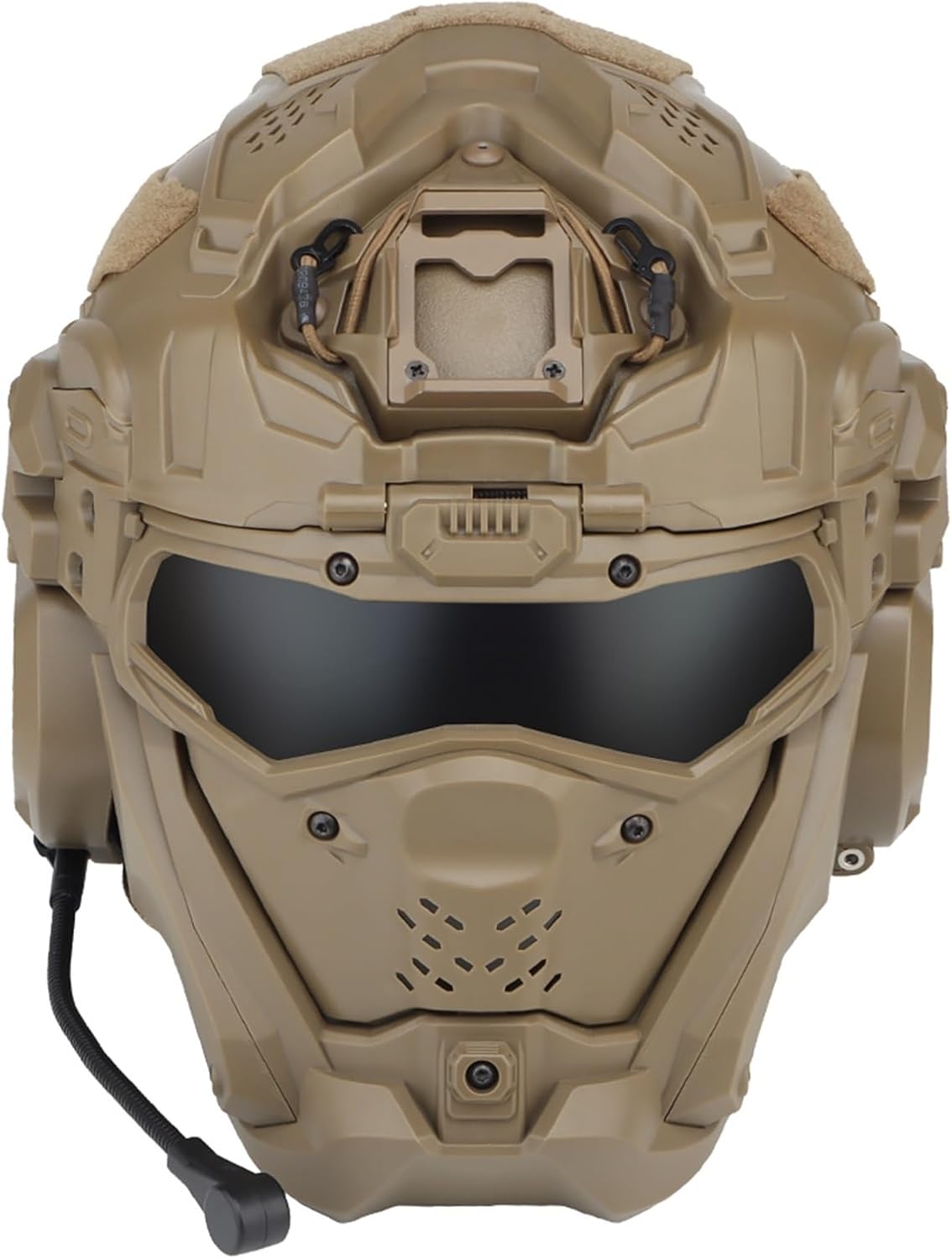 Product Name: Modular Helmet Mask Goggle SetMaterial: ABS + Nylon + PC ( Lens)Weight: Approx. 1.8 kgHead Size Fit: 52–62 cm (20.4"–24.4")Lens Thickness: 2.0 mm PC Impact-Resistant LensProtection Coverage:Full Head ProtectionFace Mask ProtectionEye Protection GogglesModular Detachable DesignHelmet Features:Durable ABS Shell ConstructionIntegrated Side Accessory RailsDetachable Front Mount BaseElastic Retention Cord for StabilityAdjustable Chin Strap SystemPackage Includes:1 × Airsoft Helmet