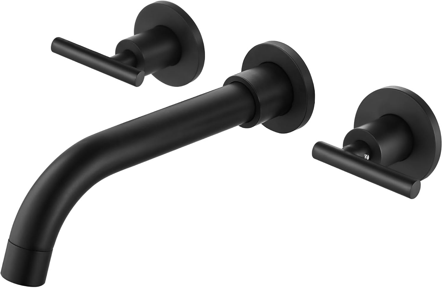 Introducing the Airuida Wall Mount Kitchen Sink Faucet, perfect for any kitchen setting. Made of refined brass material construction, this faucet features an advanced matte black finish that resists corrosion, tarnishing, and is also anti-rust. The double handle design allows easy control of cold and hot water, while the high arch swivel spout design rotates 360 degrees, providing a smooth and user-friendly experience. This commercial grade kitchen faucet boasts an adjustable hole distance of 8 inches and comes with an adjustable adapter to adjust installation hole distance between 7.75 inches - 8.25 inches. This Airuida wall mount kitchen faucet is suitable for water pipe connection with male 1/2" pipe thread coming out of the wall and comes with installation instructions, making it easy to install without the need for a professional plumber. Additionally, the product features "promises lifetime warranty, Any problem with this 8 inch wall mount faucet, please contact us, we will provide any replacement in future use." Don't hesitate to add this 8-inch farm sink wall mount faucet to your collection of kitchen essentials. Get your Airuida wall mount kitchen faucets black now and enjoy the convenience and durability it brings to every use.