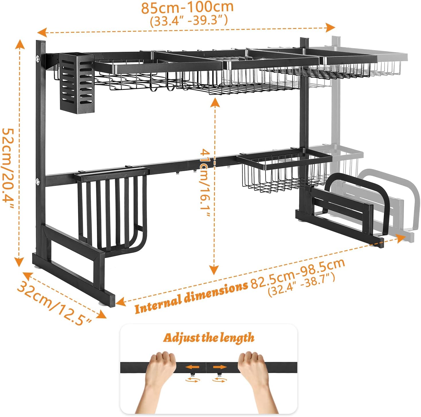 All-In-One Kitchen Storage U-shaped Frame structure drainer shelf is very stable. The double-poles makes the structure stronger.Raise the guardrail to prevent items from falling.Stainless steel material ensures this dish rack no rusting, long lasting durability and easy to clean.Thoughtful for every details thus you'll always have clear line of sight, more easy to do any cleansing work.