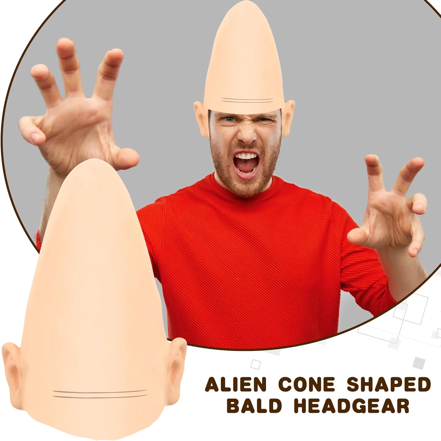 Cagemoga Alien Cone Bald Head Funny Egg Shaped Bald Head Props for Cosplay Halloween Alien Party Dress Up Accessories Wide application: our cone bald head cap can be used as a costume prop for Halloween, Cosplay, school activities and stage performances. It can also be used as a prank on April Fools' Day to scare your friends Specification: Material: latex Color: as the pictures shown Size: approx 30 x 25 cm/ 11.81 x 9.84 inch Quantity: 1 pack Package include: 1 x Alien Cone Bald Head Note: Suitable for children over 12 years old