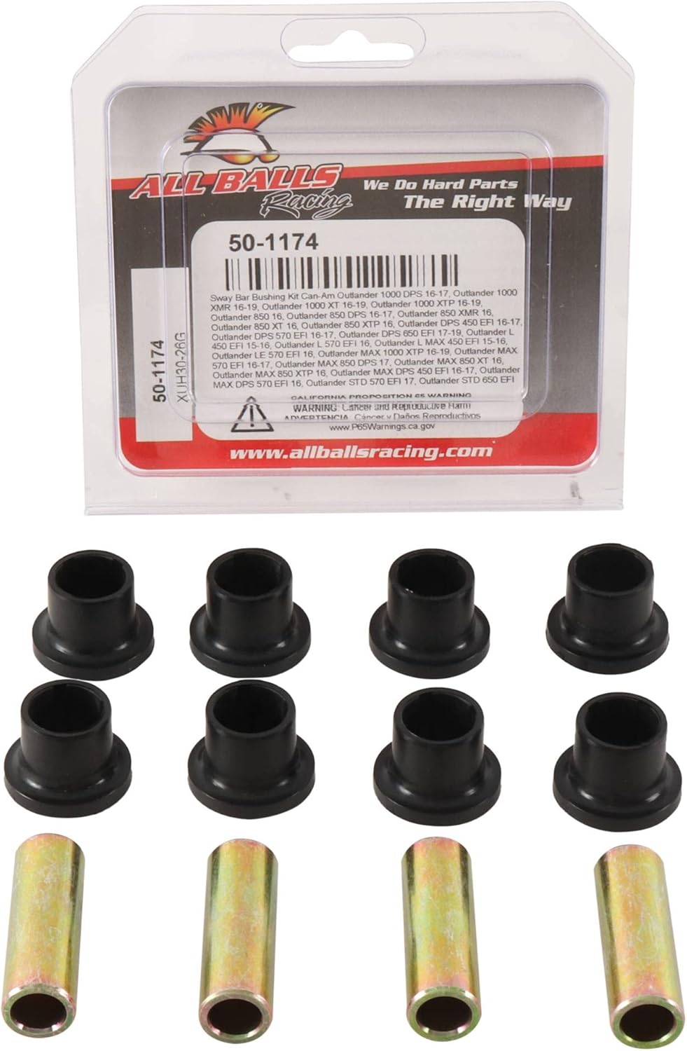Verify the part fits before purchasingSway Bar Bushing Kit for Can-AmApplications:Can-Am Outlander 1000 DPS 2016 - 2017, Outlander 1000 XMR 2016 - 2017, Outlander 1000 XT 2016 - 2017, Outlander 1000 XTP 2016 - 2017, Outlander 850 2016, Outlander 850 DPS 2016 - 2017, Outlander 850 XMR 2016, Outlander 850 XT 2016, Outlander 850 XTP 2016, Outlander DPS 450 EFI 2016 - 2017, Outlander DPS 570 EFI 2016 - 2017, Outlander DPS 650 EFI 2017 - 2018, Outlander L 450 EFI 2015 - 2016, Outlander L 570 EFI 2016, Outlander L MAX 450 EFI 2015 - 2016, Outlander LE 570 EFI 2016, Outlander MAX 1000 XTP 2016 - 2017, Outlander MAX 570 EFI 2016 - 2017, Outlander MAX 850 DPS 2017, Outlander MAX 850 XT 2016, Outlander MAX 850 XTP 2016, Outlander MAX DPS 450 EFI 2016 - 2017, Outlander MAX DPS 570 EFI 2016, Outlander STD 570 EFI 2017, Outlander STD 650 EFI 2017 - 2018, Outlander XMR 570 EFI 2016 - 2017, Renegade 1000 2016 - 2017, Renegade 1000 XMR 2016 - 2017, Renegade 1000 XXC 2015 - 2017, Renegade 570 EFI 2016 - 2017, Renegade 850 2016 - 2017, Renegade 850 XXC 2016 - 2017, Renegade XMR 570 EFI 2017