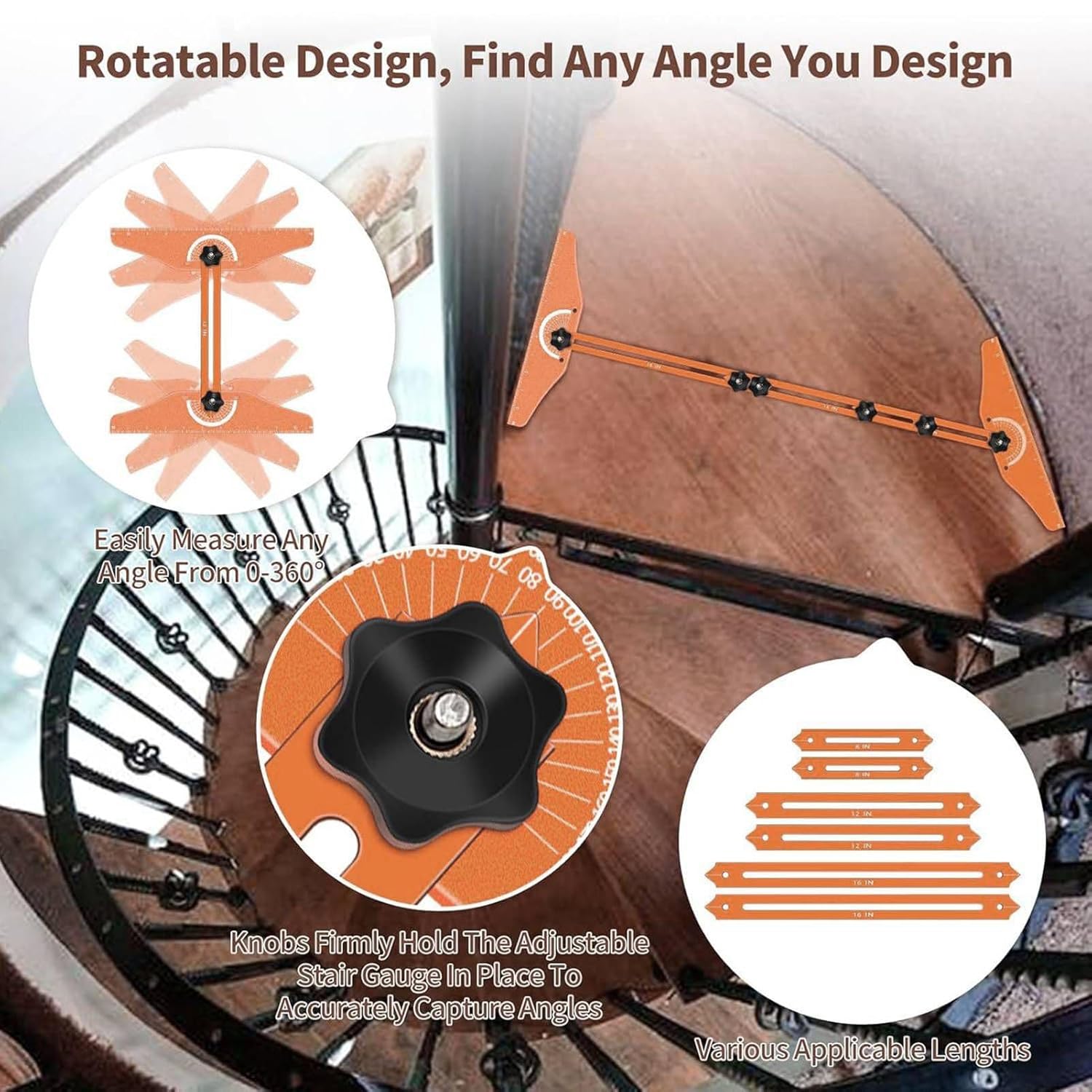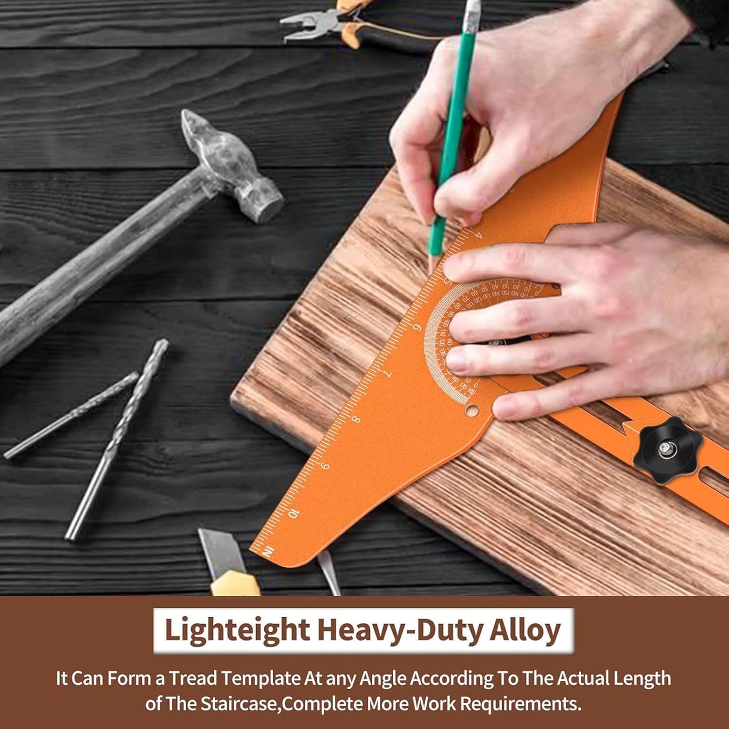 Specification: Item Type: Stair Tread Template Tool Material: Aluminum alloy Use: Stair folding rule How to Use: Splicing to use Package List: 2 x Measuring Board 2 x 16in Slider 2 x 12in Slider 2 x 8in Slider 2 x Wooden Fixing Block 9 x Knob 5 x Long Screws 9 x Short Screws 1 x Accessory 1 x Hex Screwdriver 1 x Toolbox