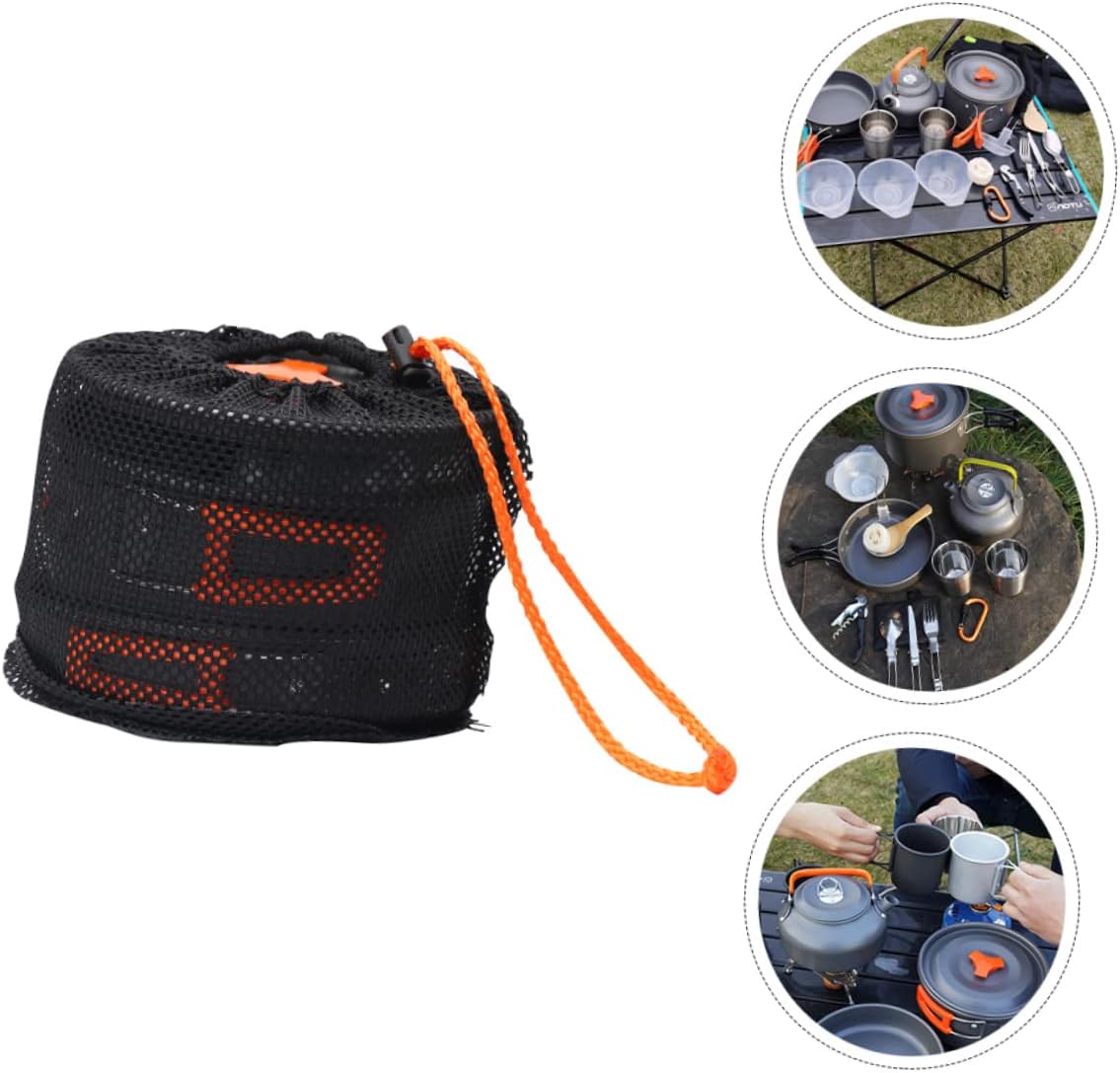 Package List 1 x cauldron 1 x pot cover 1 x teapot 1 x teapot lid 1 x frying pan 2 x cups 1 x bottle opener 1 x quick hanging 1 x set of 3 pcs tableware 1 x mesh bag 1 x packing box 3 x bowls 1 x spoon 1 x towel gourd 1 x soup spoon Characteristics -Material: Aluminum alloy outdoor cookware set -Color: Orange portable pot set -Packing size: About 26.00X18.00X10.50cm/10.23X7.09X4.13inch camping cookware - The non-sticky and foldable design provides great convenience for you camping cookware kit. - A collapsible handle with a plastic cover can protect you from burns camping pots. - Crafted with quality aluminum alloy material which can stand high temperature and weight camping cooking set. - Lightwight and portable, easy to clean and carry portable cutlery. - and for outdoor camping, hiking, climbing supplies aluminum alloy cookware.Goods Informationportable cutlery as a friends who like outdoor adventures.camping cookware kit This item is a set of outdoor cookware, manufactured with aluminum alloy material for to use.aluminum alloy cookware This camping cooking set has been carefully designed to make your camping experience more fun and convenient