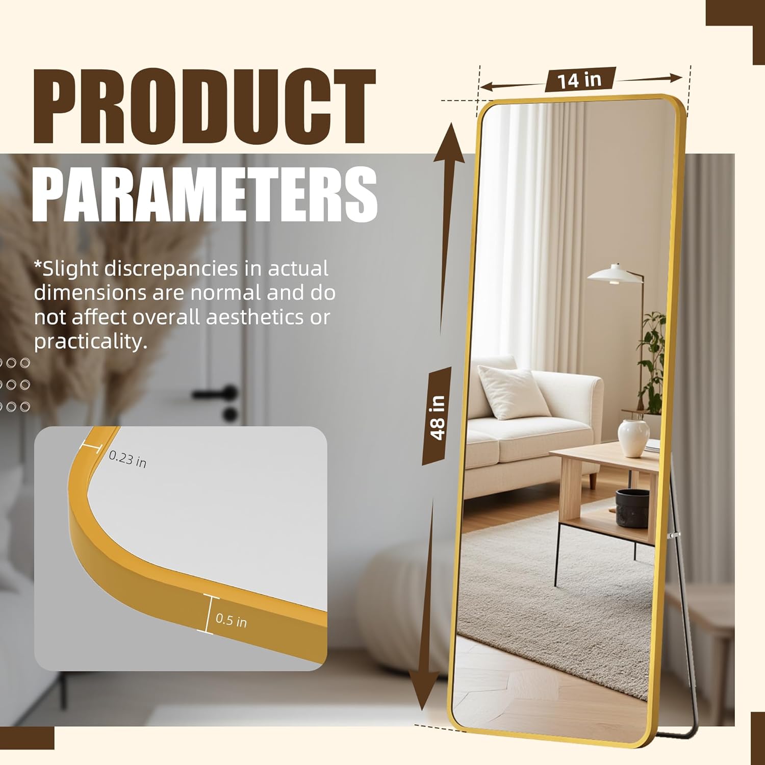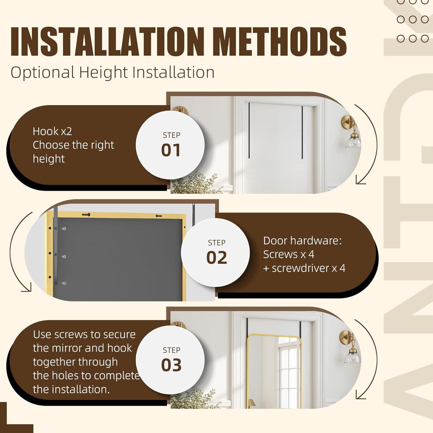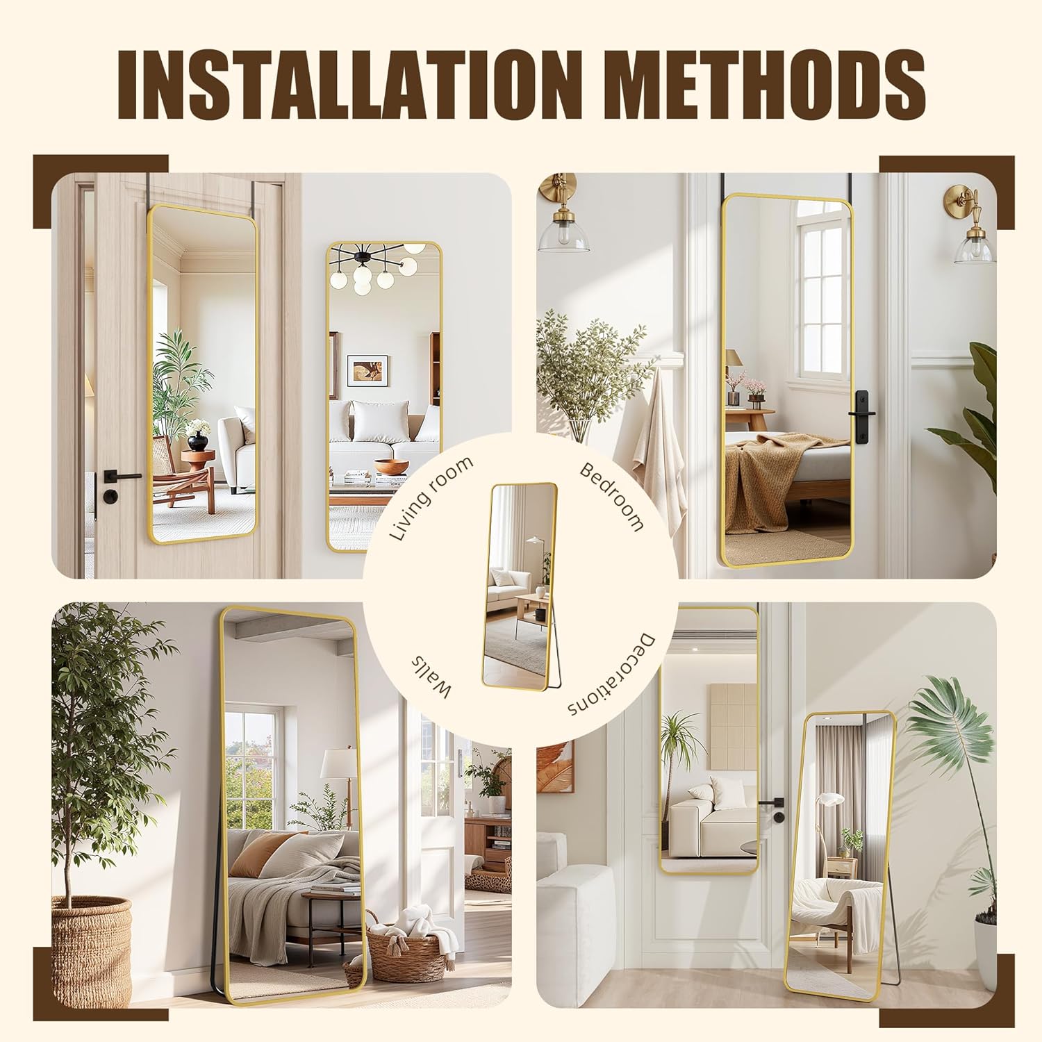 | Mounting Type | Over Door Hanging/Wall Mounting/Leaning/Standing |