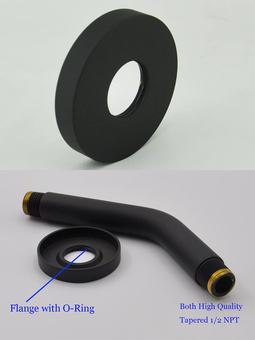 Aquaiaw Shower Arms Bundle, 6 inch Ceiling Mount Shower Arm and 6 inch Wall Mount Shower Arm, Both by Heavy-Duty Solid Brass, Both Round, Matte Black, Both with Flange, All Tapered 1/2 NPT Threads
