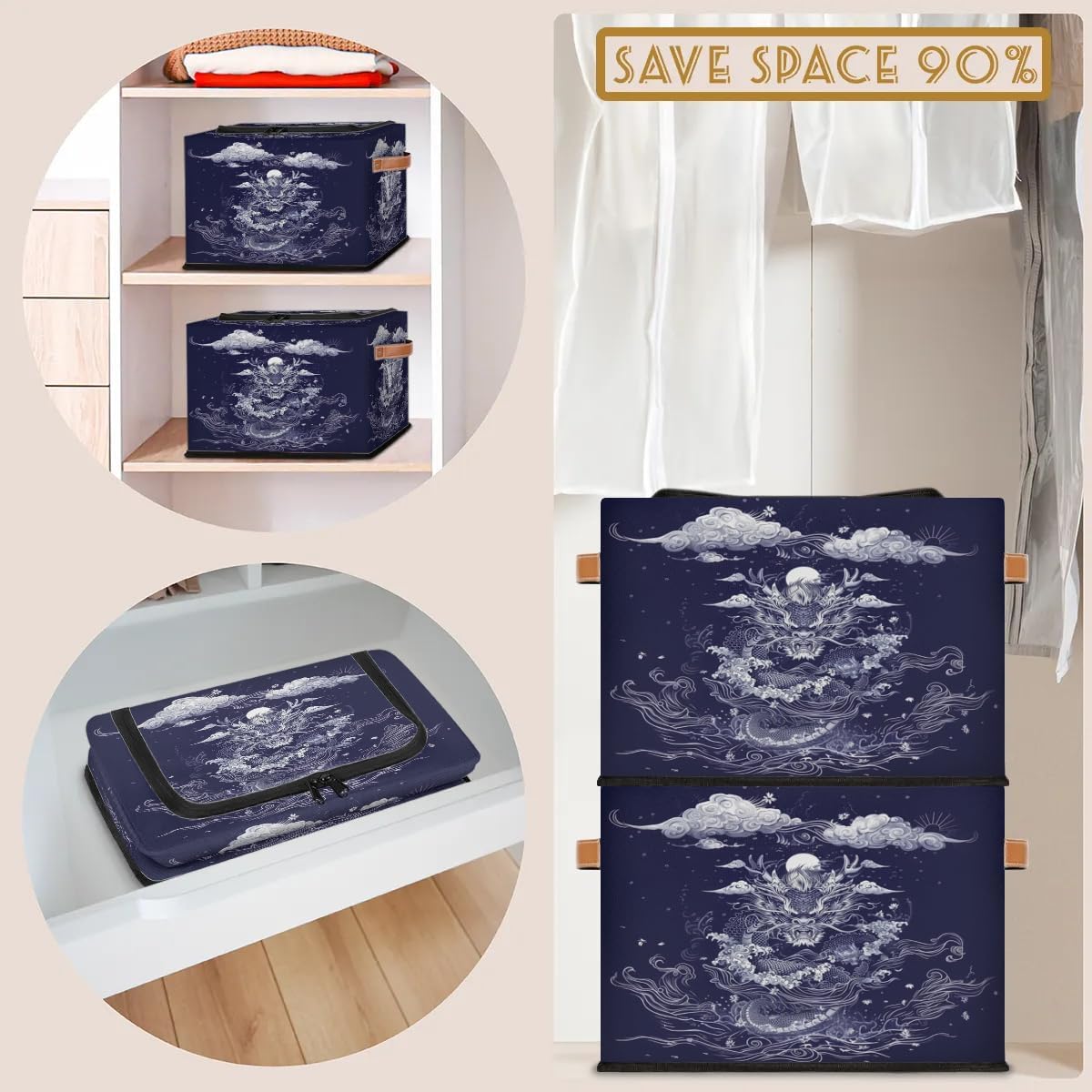 Large Capacity: storage bag size 14.2 x 10.2 x 10 in, Large capacity storage bins can store clothes, pillows, sheets, towels and other household items, Keep your belongings organized and easy to find!Material: Made of polyester with a leather handle, the storage box is waterproof, lightweight, colorfast, sturdy and easy to care for. 2 packStorage Bins with Zipper Lid: The storage box with zippered lid is designed to keep items from falling apart and keep your belongings protected from water and dust.Portable Collapsible: The organizer basket is surrounded by a fixable wire frame, movable frame, foldable design for easy storage, and the storage box can be easily folded to save space when not in use.Multi-purpose Storage Box: The storage bins are perfect for kitchens, living rooms, bathrooms, closets, game rooms and cars, college dorms, campers, apartments, hotels, baby nurseries and more.Care Approach: Hand wash only. Not machine washable. You can take a damp cloth or sponge to wipe the stained area. If there are more obvious stains, a little soap and water can be used to remove the stains, taking care to clean the soap. Air dry naturally after washing. Do not bleach. Do not scrub the basket vigorously with brushes or the like.