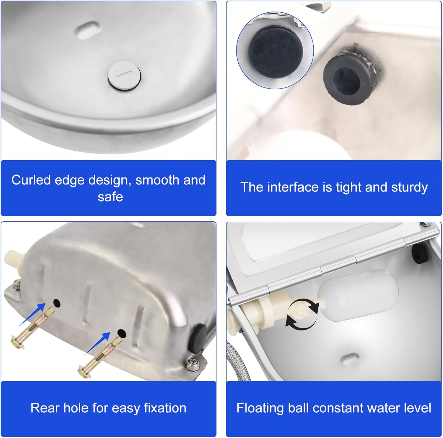 Specifications: Material: 304 stainless steel Usage: Horses, cows, pigs, goats, sheep, alpacas, dogs, etc. The products include: 1 * water bowl, 1 * water injection pipe, 1 * extended water float, 1 * 1/2 quick connect female connector, 1 * 3/4 quick connect male connector, 2 * countersunk bolts, and 1 * raw material strip. 1. The stainless steel dog drinking bowl is made of 304 stainless steel material, food grade, BPA free, not easy to rust, and easy to clean 2. The edge of the bowl is smooth and won't cut the animal's mouth, providing clean drinking water for pets. 3. Adopting the principle of floating water level, controlling the inlet and outlet switches to achieve a constant water level effect, maintaining sufficient water, always keeping fresh water, and never splashing, you can rest assured to do other things, even when on vacation or working. 4. There are 2 mounting holes on the back of the water bowl, which can be used in conjunction with countersunk bolts 5. Comes with a spare float valve, reliable and practical. The additional float valve is sufficient to ensure that you can use the product for a long time. 6. Automatic drinking bowls are great drinking containers suitable for dogs, chickens, goats, cats, livestock, pigs, calves, horses, cows, sheep, and more. It can also be used in pastures, farms, gardens, courtyards, and other places. Be careful: Manual measurement, please allow for slight errors in size. Due to different screen displays, there may be slight differences in color.