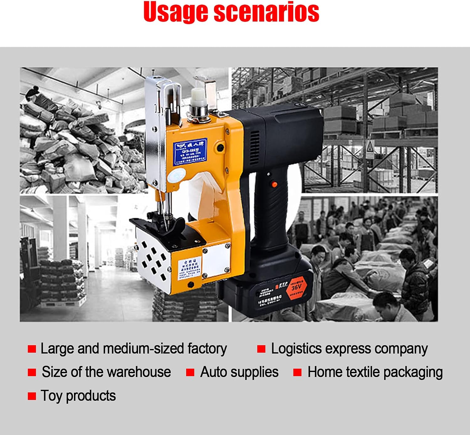 Specifications:Type: Electric Bag Sewing MachineThread: Single ThreadVoltage:110V Battery ChargerPower: 210WBattery: 1x36V lithium batteryNeedle Rail Distance: 7-10mmMaximum thickness: 5mmSize: 26x8.5x25.5cm/10.24x3.35x10.04inWeight: Approx. 3.5kgPackage Included:1x Sewing Machine1x Belt4x Needles1x Lithium Battery ChargerPlease NoteBecause The Positioning Of The Internal Parts Of The Machine Is Very Accurate, When Replacing The Needle Or The Crochet, Please Follow The Steps In The Manual And Do Not Move The Position Of Other Parts.