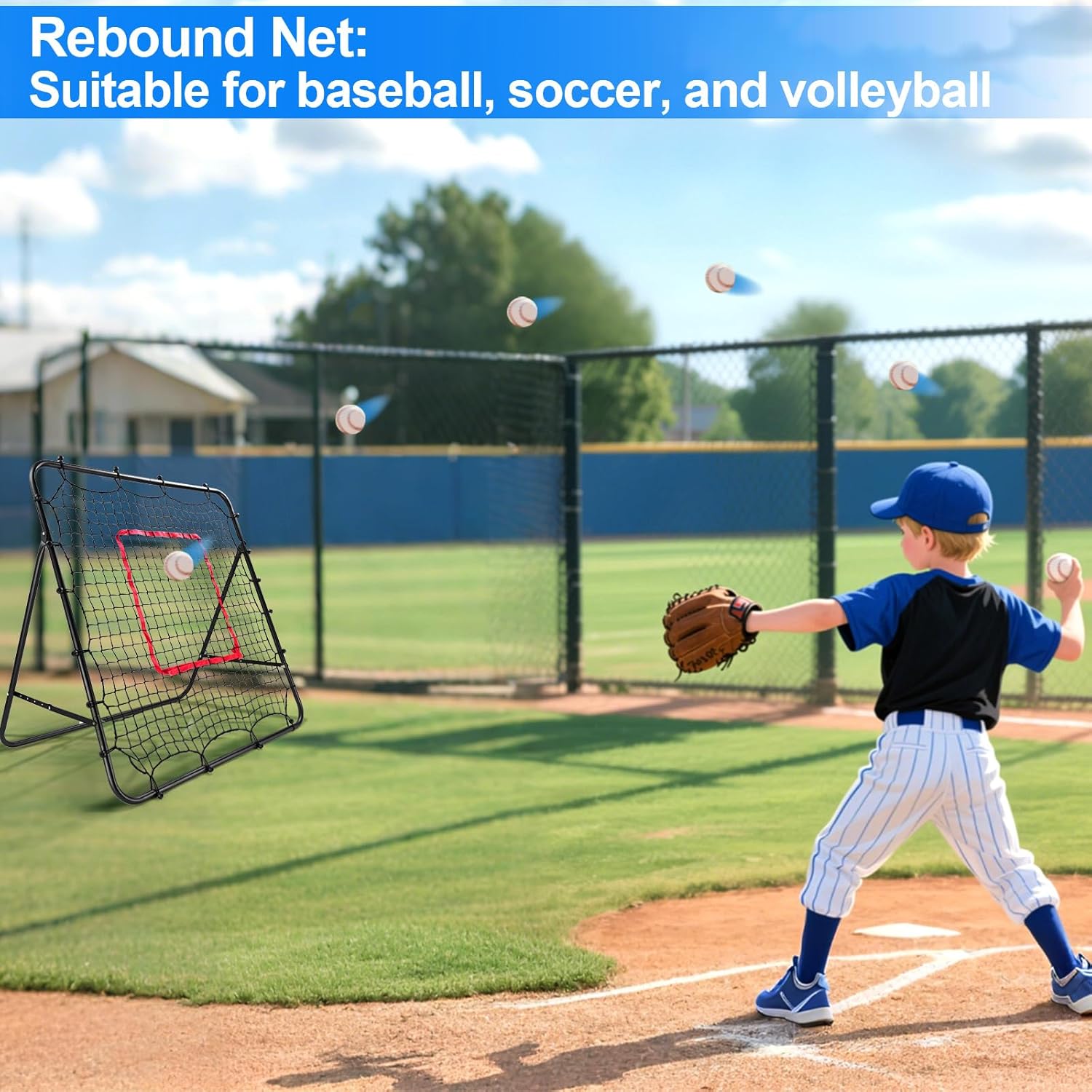 Pejevir Baseball Rebounder Net Softball Pitch-Back Rebound Net with Attachable Pitching Target and 3 Adjustable Angles, Portable Fielding Trainer Bungee Net Practice Equipment for Backyard, 4 X 4 ft