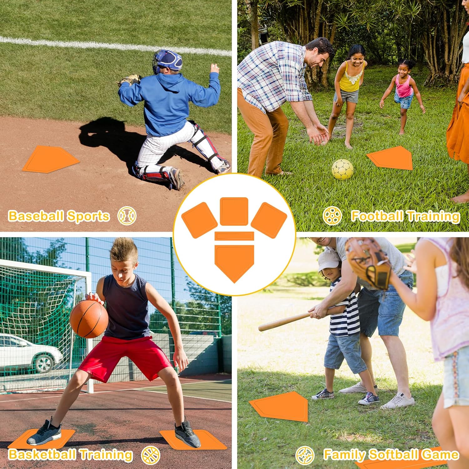 NVAAV Baseball & Softball 5 Piece Base Set, Rubber Field Bases for Kids & Adults, with 5 Piece Training Balls and Storage Bag, Throw Down Base for Backyard Tee-ball, School Kickball Practice