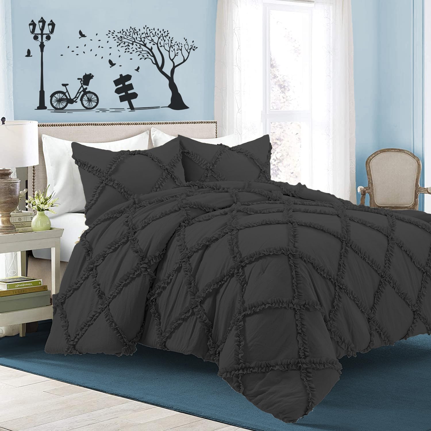 Discover luxury with this Diamond Ruffle DESIGN Duvet Cover Set that provides lasting vibrancy of color no matter how often it is washed and is made of high strength Egyptian Cotton that will stay soft for years. Also, no more fading colors and lint bubbles on your favorite duvet cover. The duvet cover stands out with its eye-catching Diamond Ruffle DESIGN while remaining understated with a neutral hue.