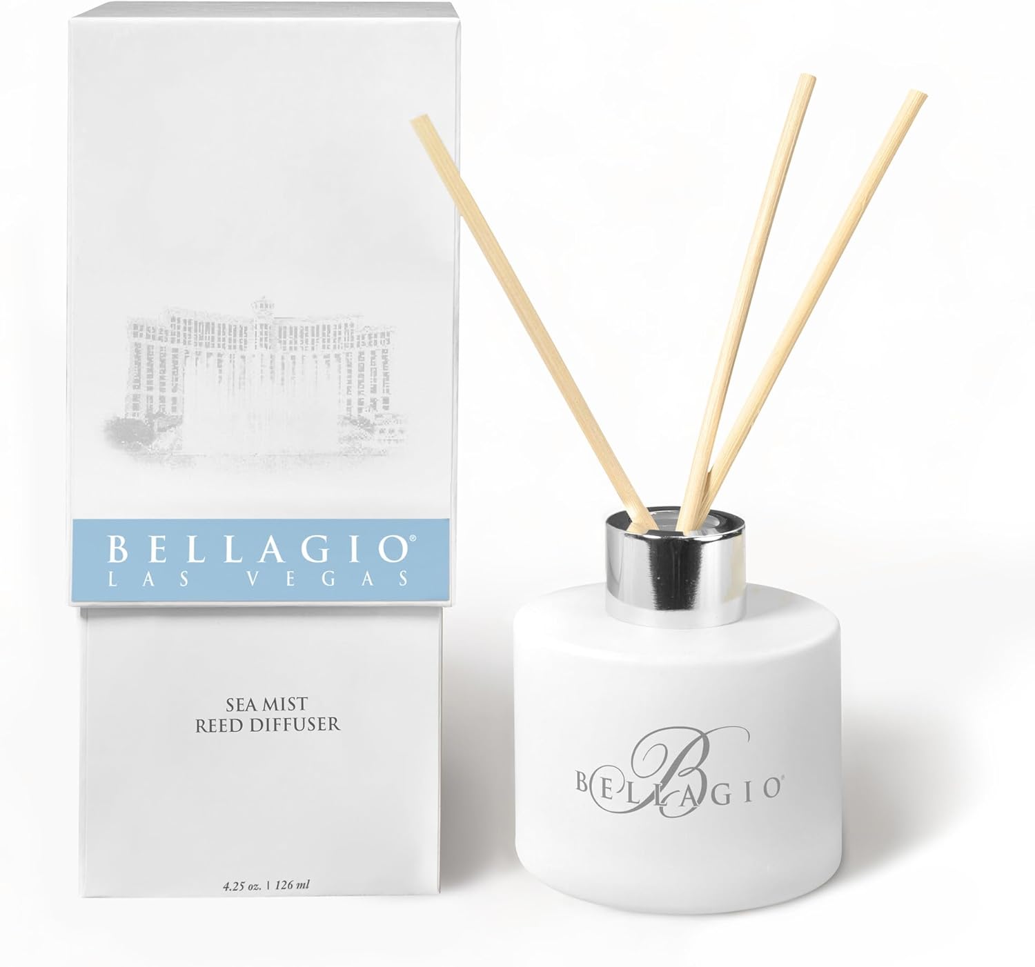 Our exclusive Reed Diffusers bring the sophisticated fragrance of a Bellagio visit home for you to enjoy. Choose from our Signature hotel scent, Spa scent, or other custom blends. To diffuse the fragrance, insert the set of 6 natural white reeds into the matte white glass vessel with silver collar, inverting as desired to customize the intensity of the scent.