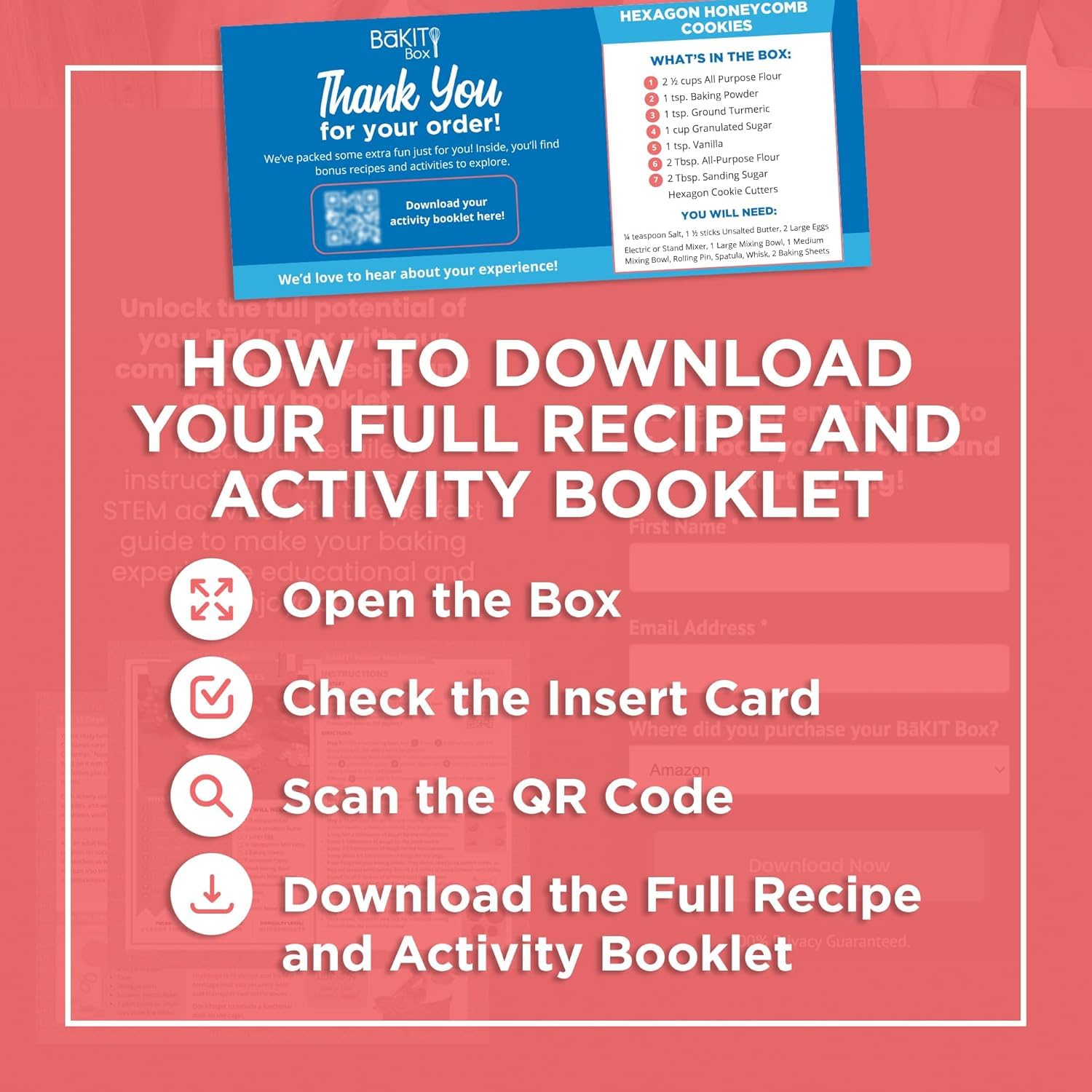 BāKIT Box Linzer Cookies and Hexagon Honeycomb Sugar Cookie Decorating Kit - Fun Baking Kit to Make Valentines Cookies - Homeschool Curriculum Geometry Kids Activities Baking Kit - STEM Birthday Gifts