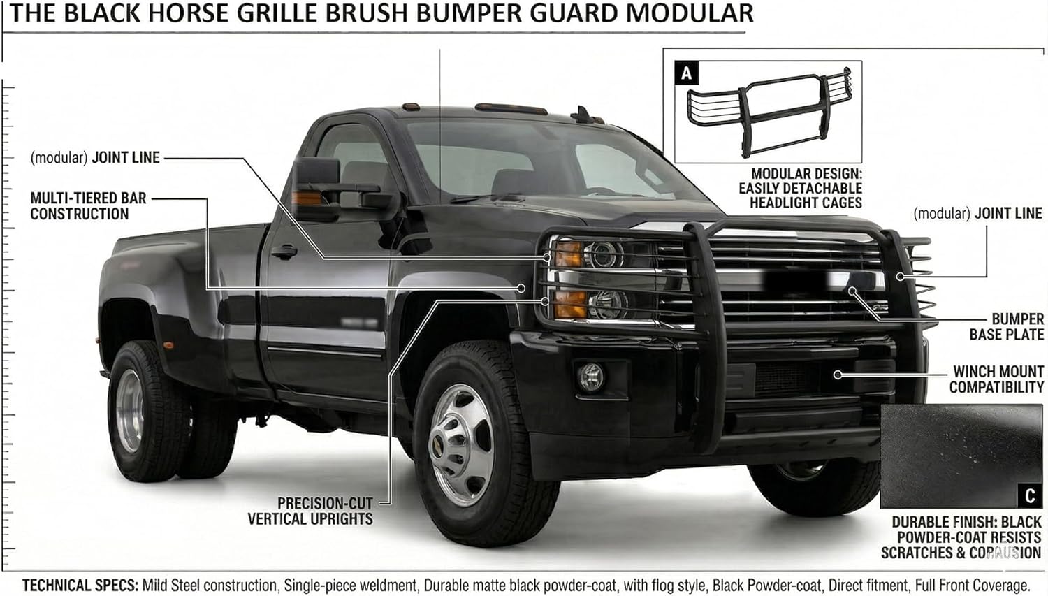 Black Horse Grille Guard Modular Black Compatible with 2015-2019 Chevrolet Silverado 2500 HD|2015-2019 Chevrolet Silverado 3500 HD-17GT28MA
