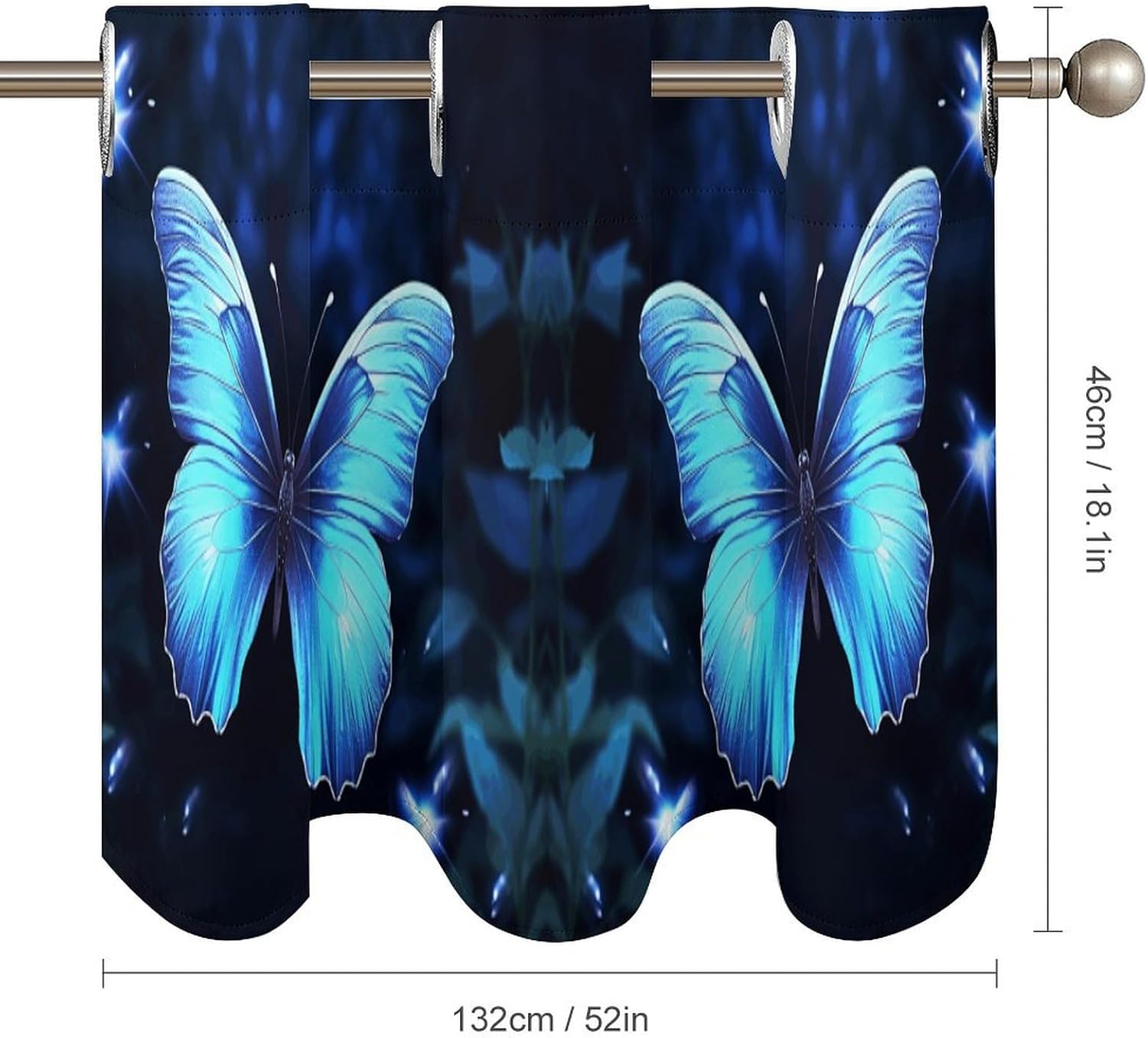 Blue Butterfly printed Window Valance Is A Great Home Decoration That Matches Your Home Style. Short Curtains Are Perfect For Window Spaces In Your Living Room, Bedroom, Dining Room, Kitchen, And Bathroom. Grommet Valances Are Beautiful And Practical, Made Of High-Quality Curtain Fabric, Adding A Sense Of Design To Your Room. Small Tiers Curtains Are Suitable For Most Hanging Poles, With Smooth Opening And Closing, And Can Effectively Protect Your Privacy. Curtain Aperture: 1.77 Inches